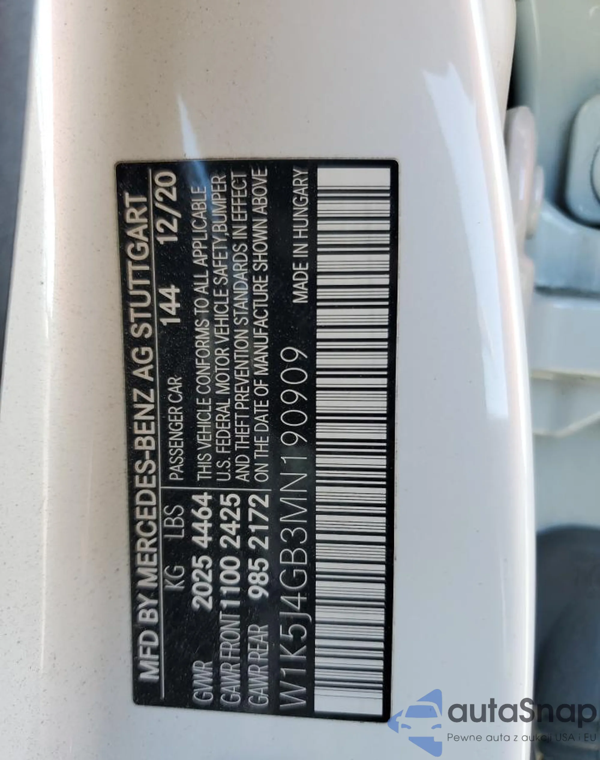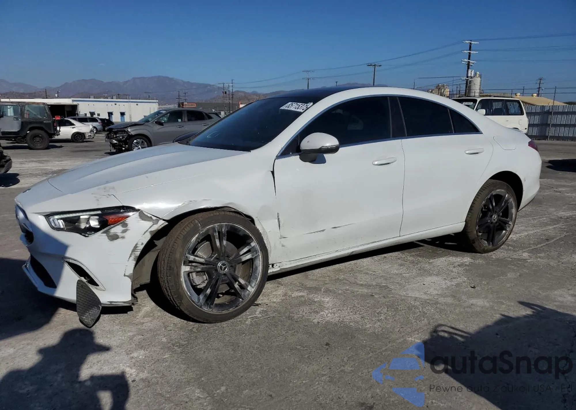The car Mercedes-Benz CLA-klasse 2021 (VIN W1K5J4GB3MN190909) has documents that prevent registration. Export and registration may be difficult. Contact AutaSnap experts to find alternatives.
