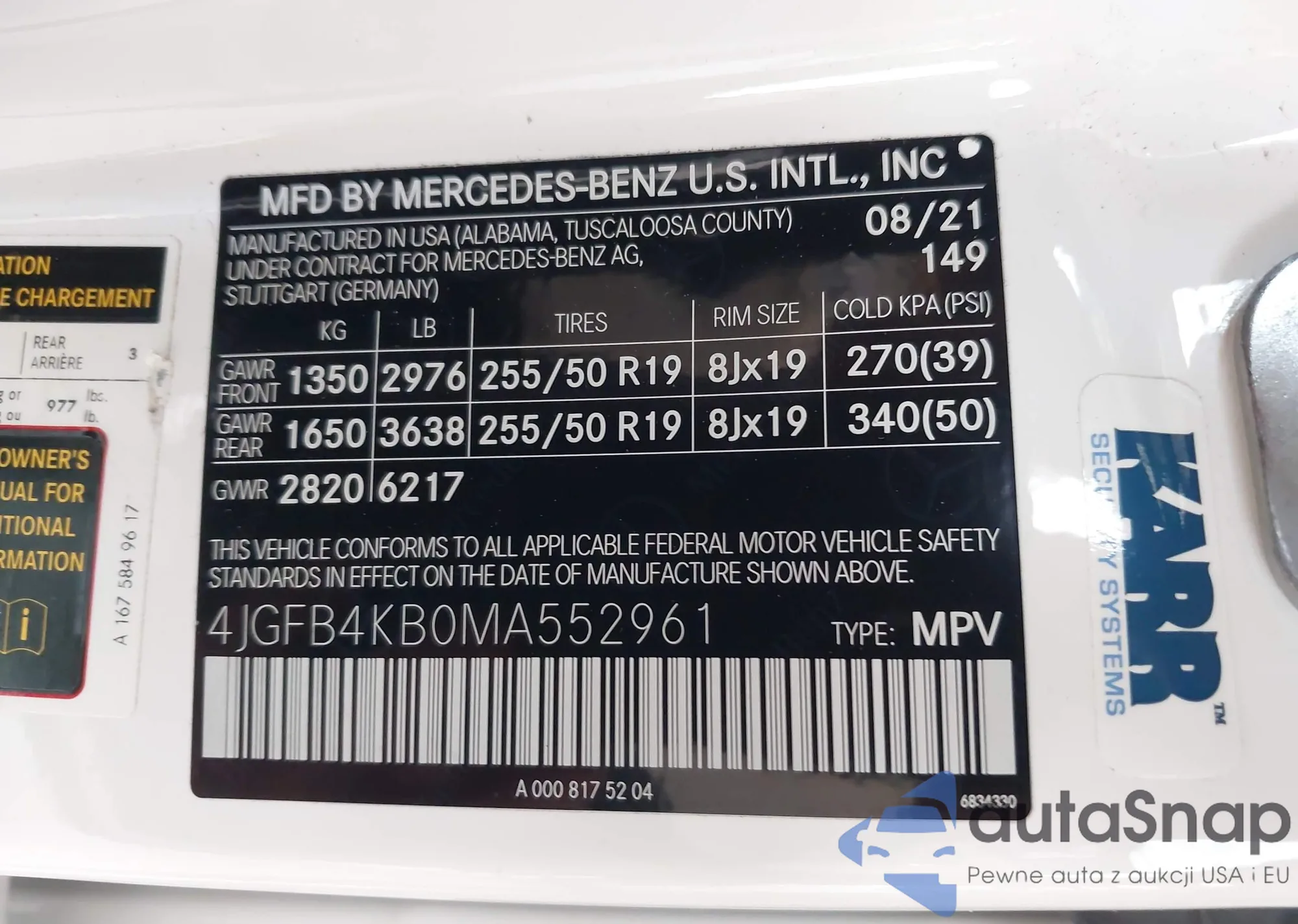 • VIN: 4JGFB4KB0MA552961