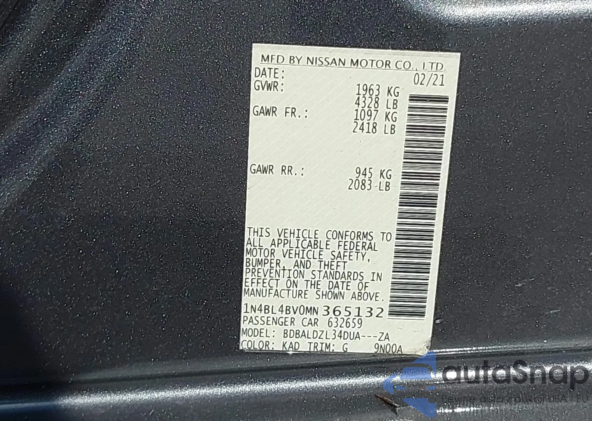 VIN: 1N4BL4BV0MN365132