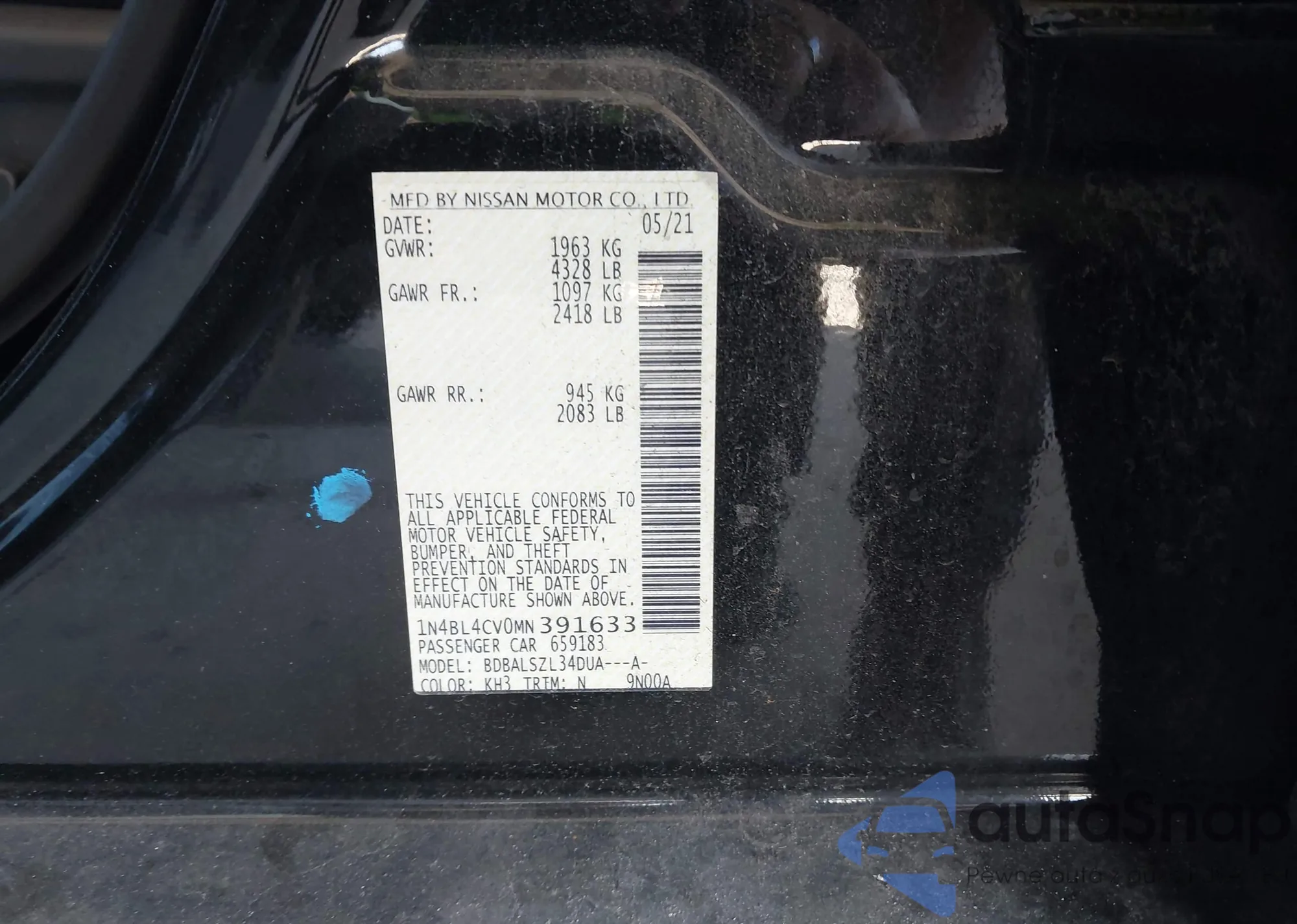 VIN: 1N4BL4CV0MN391633