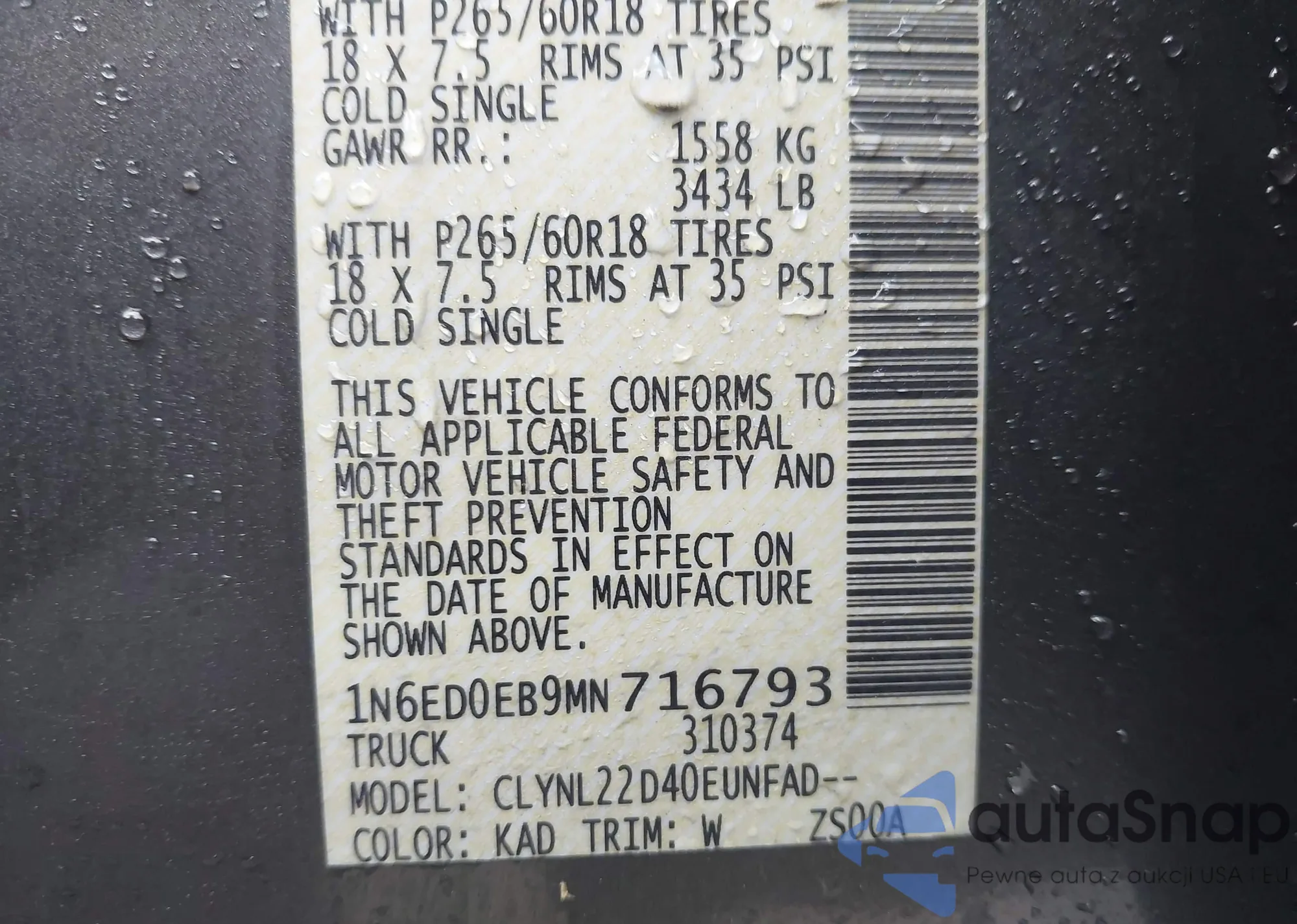 The car Nissan Navara (Frontier) 2021 (VIN 1N6ED0EB9MN716793) has not been auctioned before. The documents are clean, and the mileage matches or is below the market average. Sold by an insurance company – we recommend purchase. Delivery to the port will take approx. 6–8 weeks.