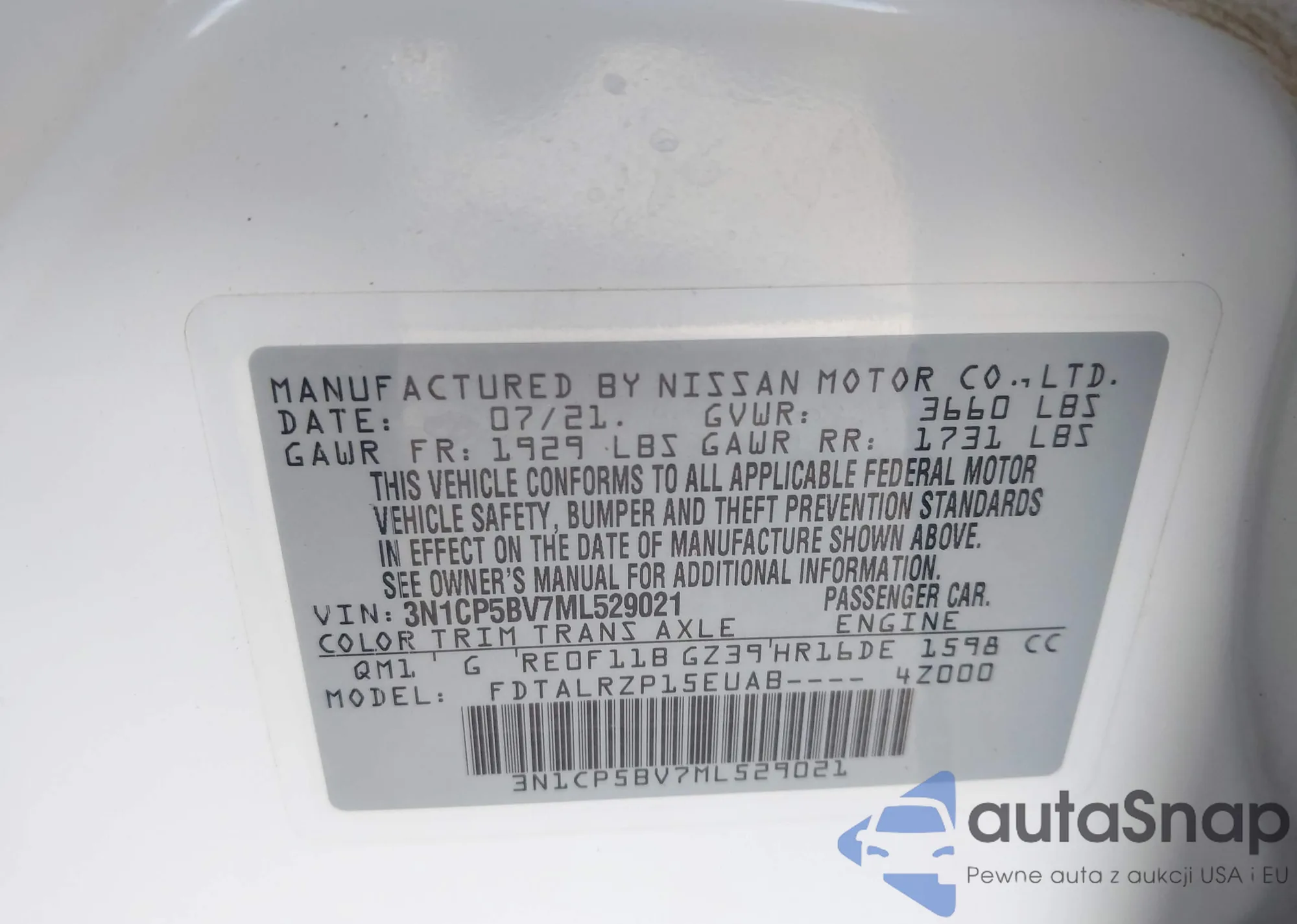• VIN: 3N1CP5BV7ML529021
