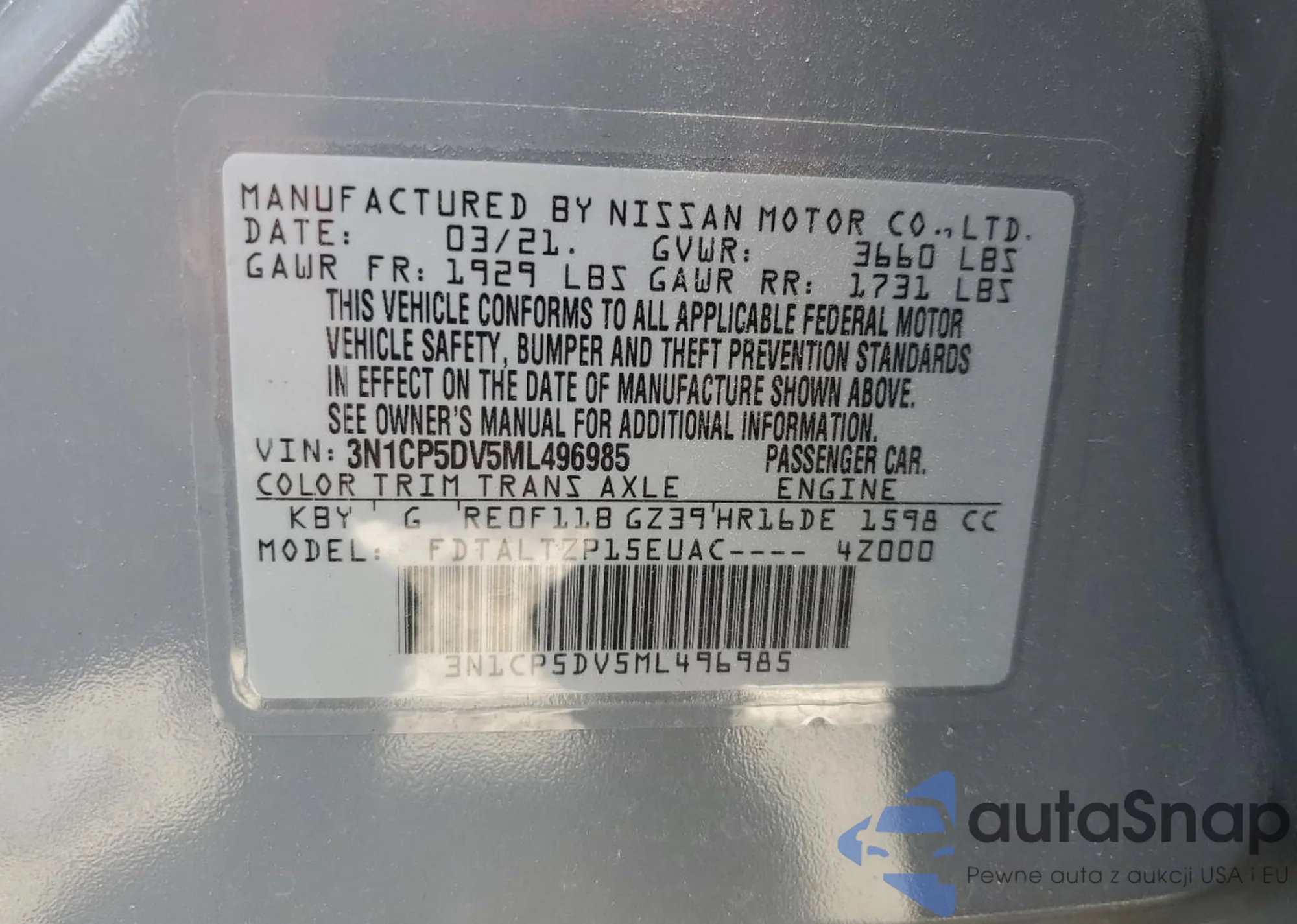 VIN: 3N1CP5DV5ML496985