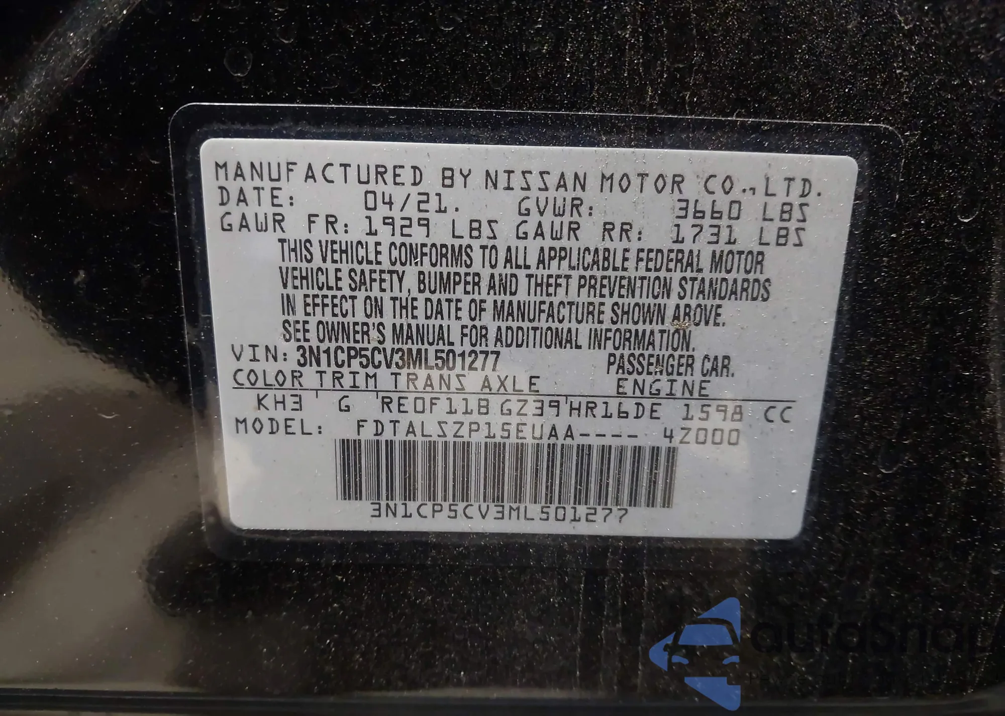 VIN: 3N1CP5CV3ML501277