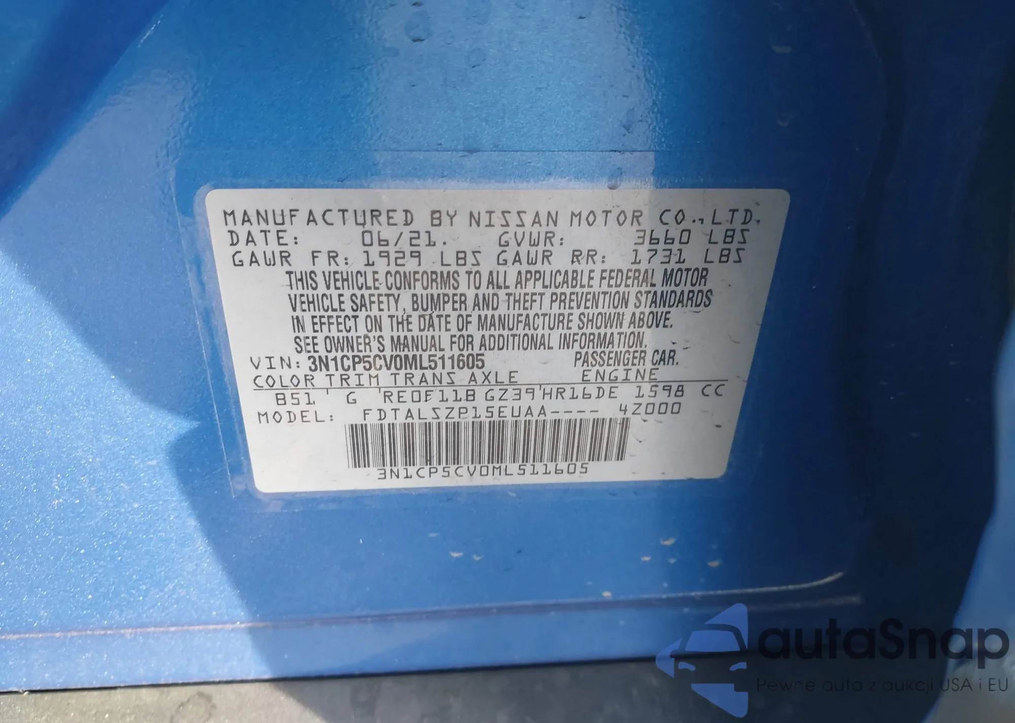 VIN: 3N1CP5CV0ML511605