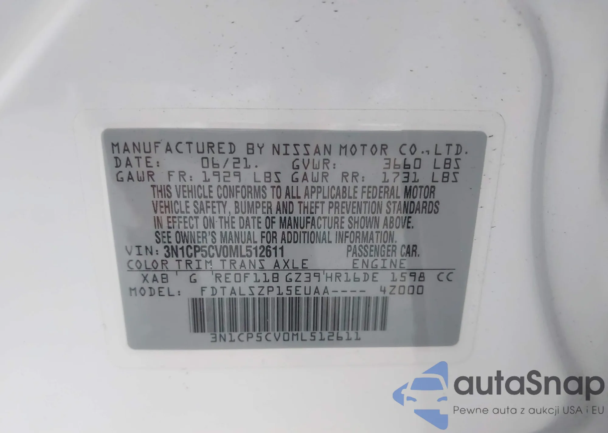 VIN: 3N1CP5CV0ML512611