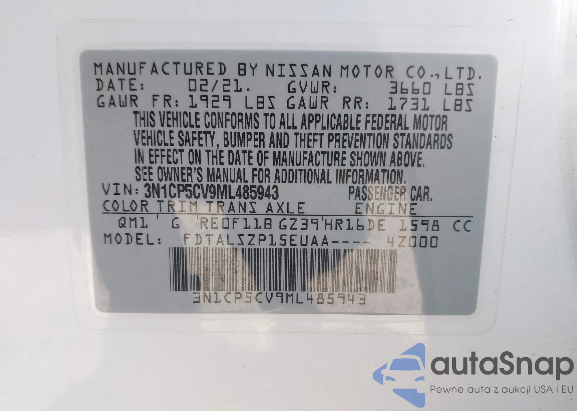 VIN: 3N1CP5CV9ML485943
