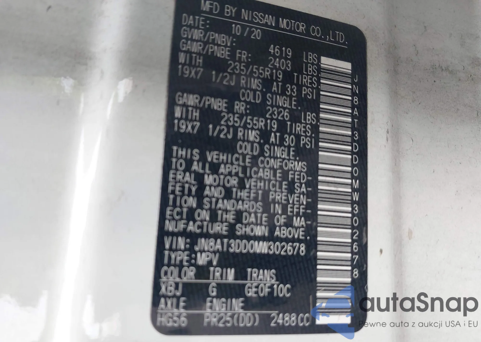 VIN: JN8AT3DD0MW302678