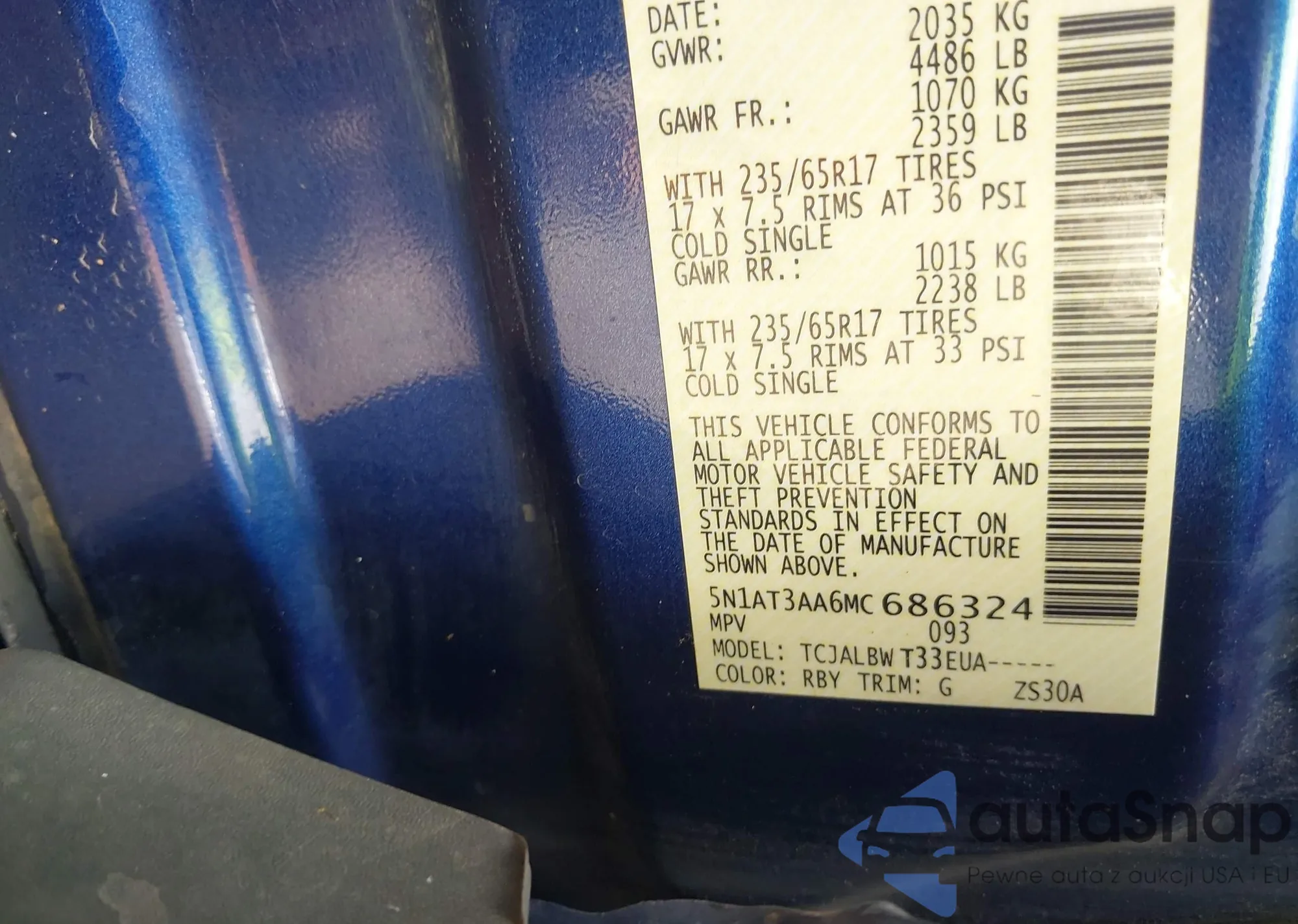 VIN: 5N1AT3AA6MC686324