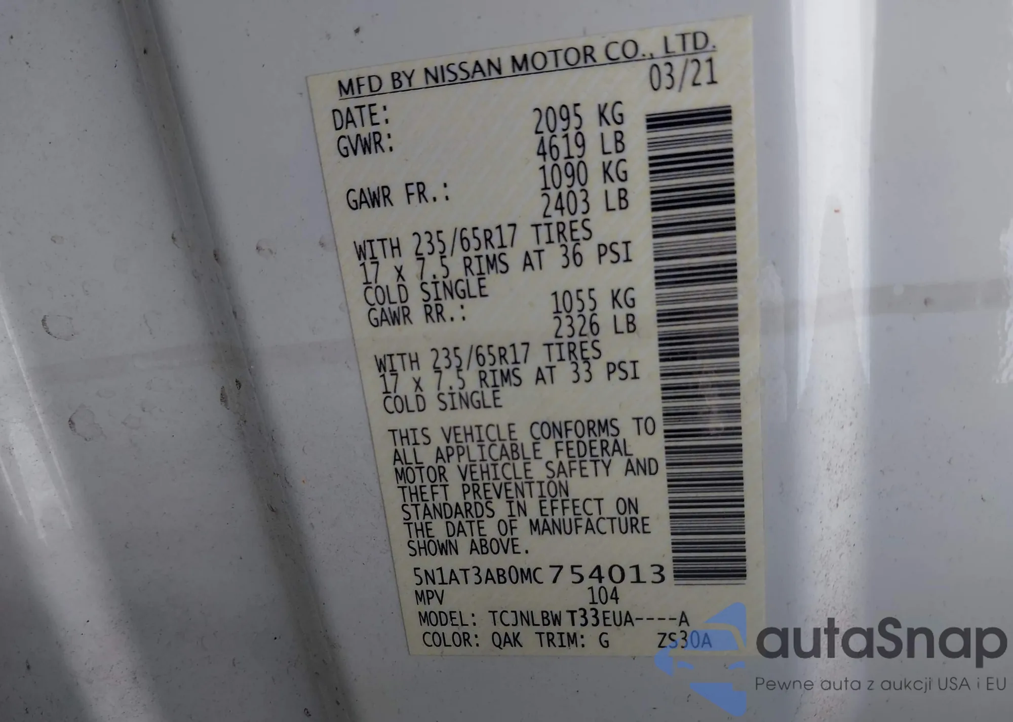 VIN: 5N1AT3AB0MC754013