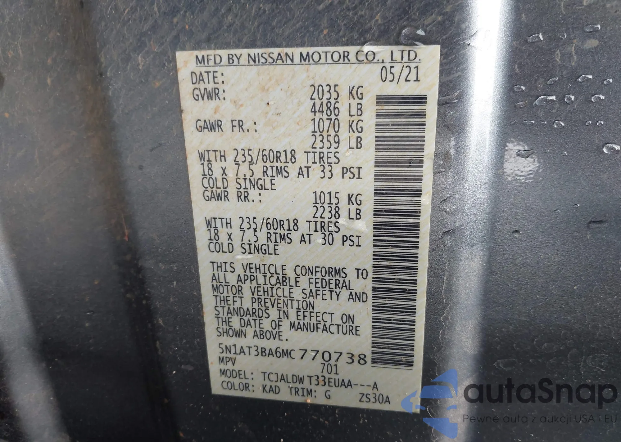 VIN: 5N1AT3BA6MC770738