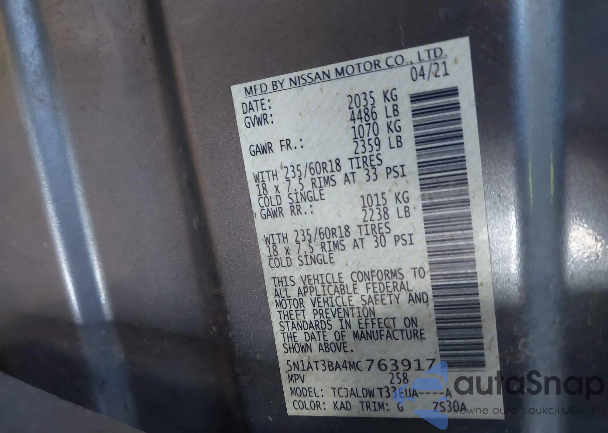 VIN: 5N1AT3BA4MC763917