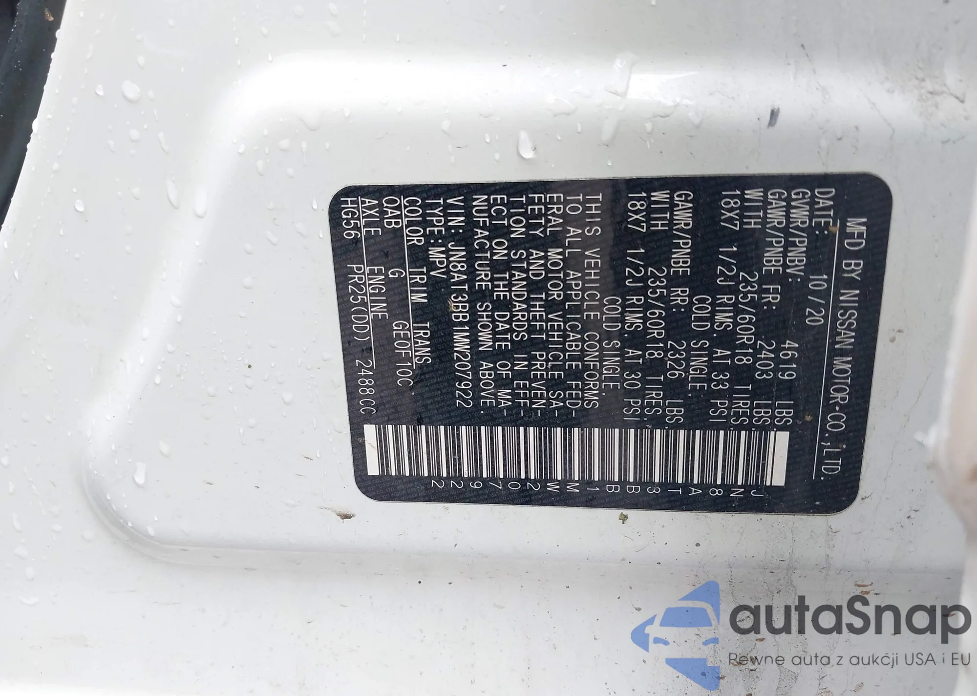 VIN: JN8AT3BB1MW207922