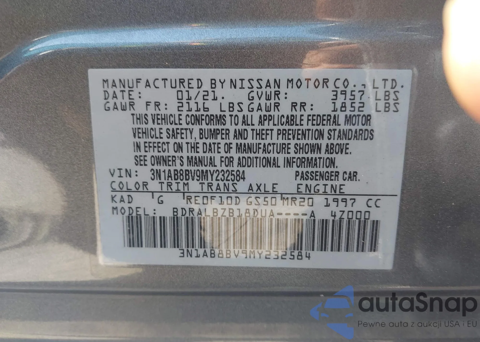 • VIN: 3N1AB8BV9MY232584
