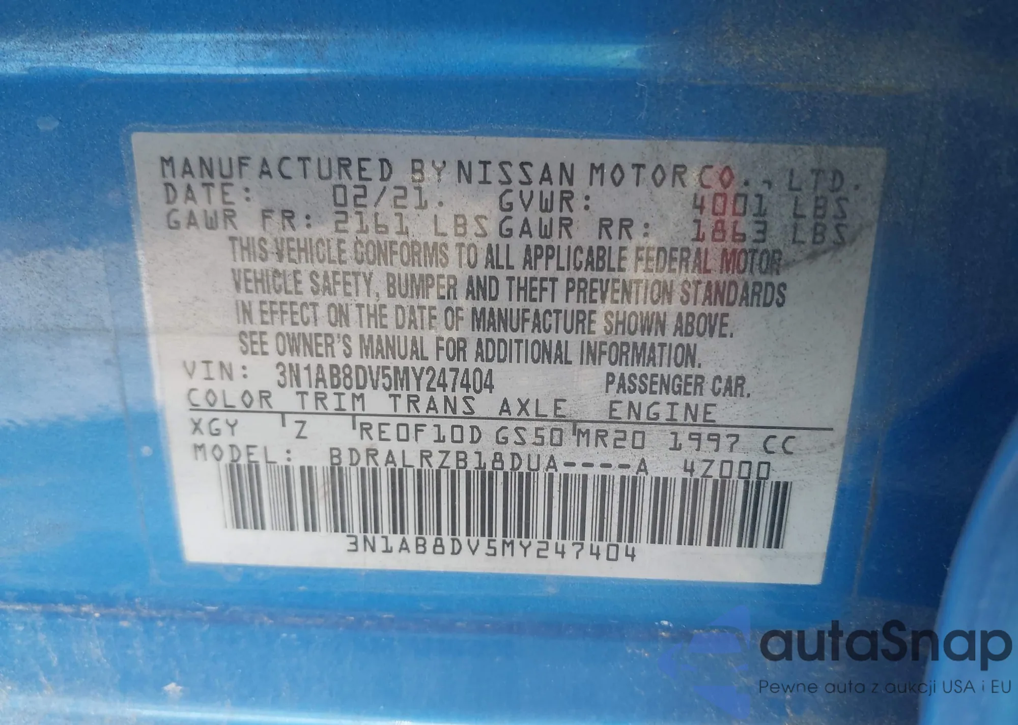 The car Nissan Sentra 2021 (VIN 3N1AB8DV5MY247404) has not been auctioned before. The documents are clean, and the mileage matches or is below the market average. Sold by an insurance company – we recommend purchase. Delivery to the port will take approx. 6–8 weeks.