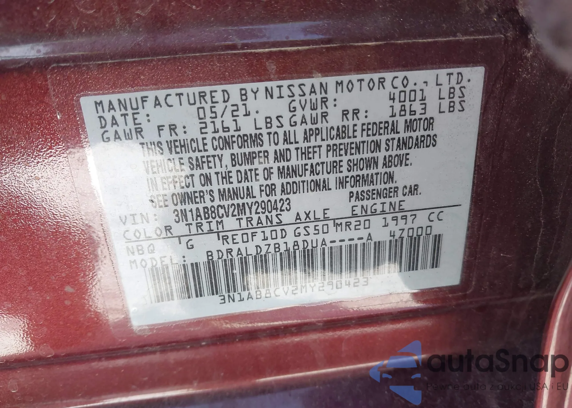 VIN: 3N1AB8CV2MY290423
