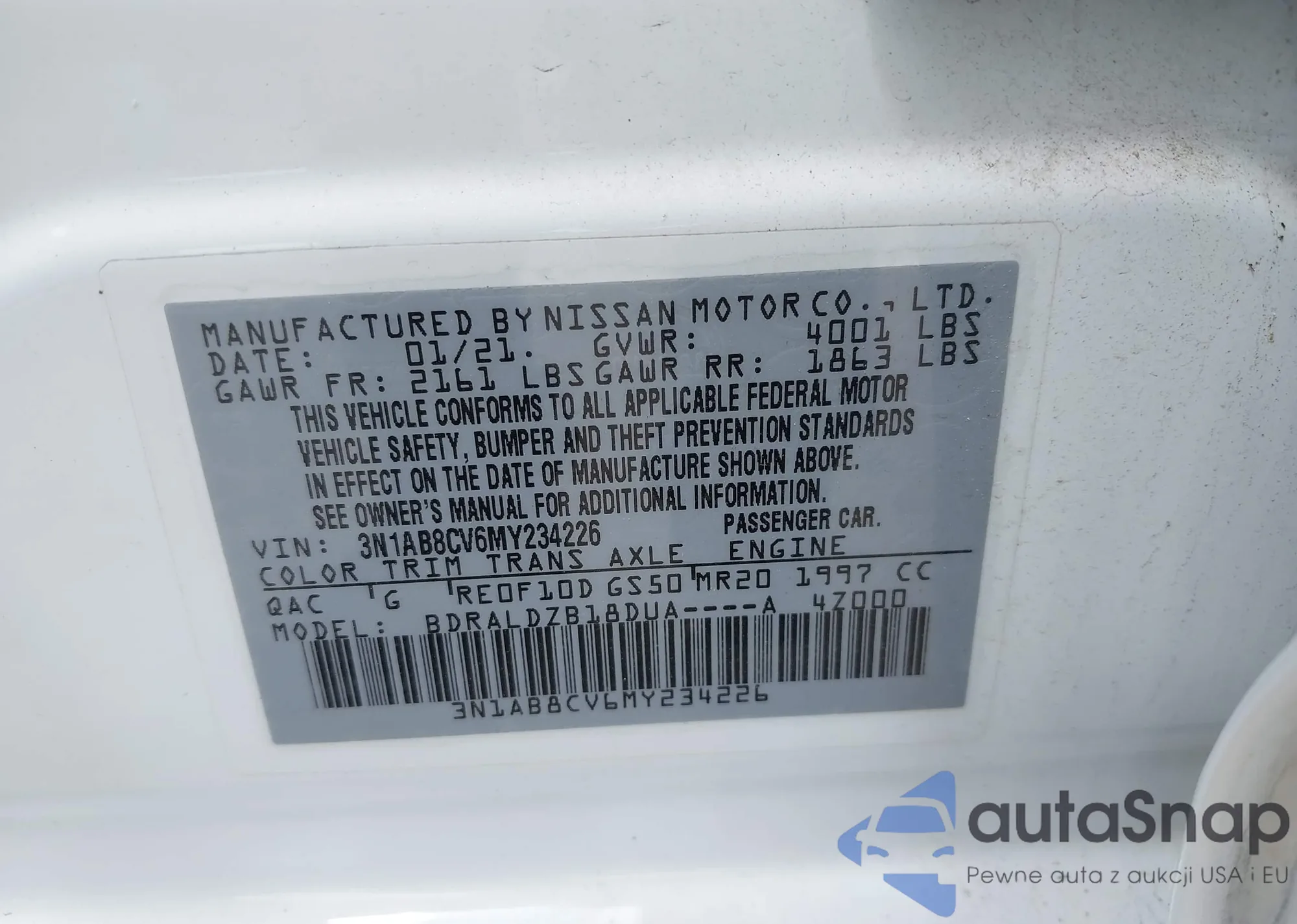 VIN: 3N1AB8CV6MY234226