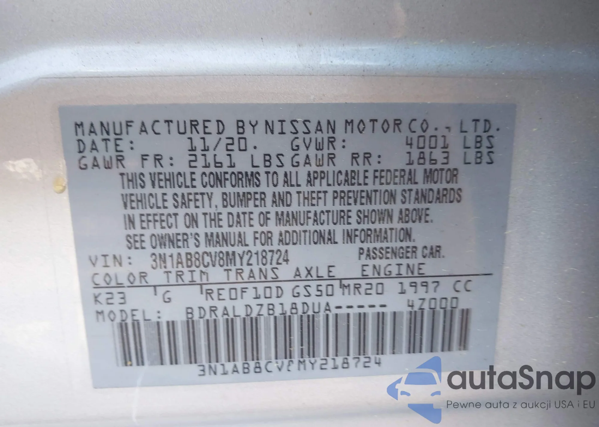 VIN: 3N1AB8CV8MY218724