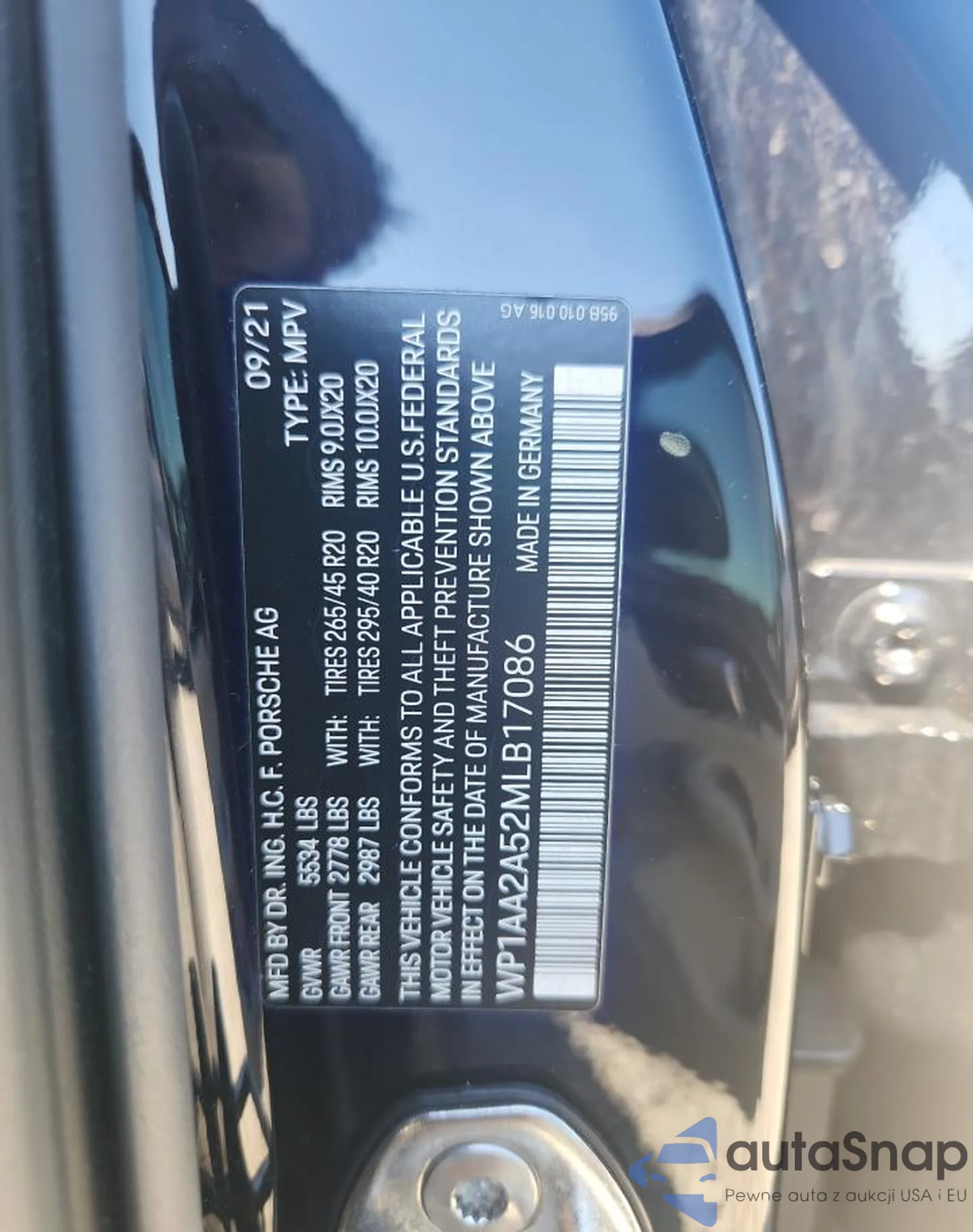 VIN: WP1AA2A52MLB17086