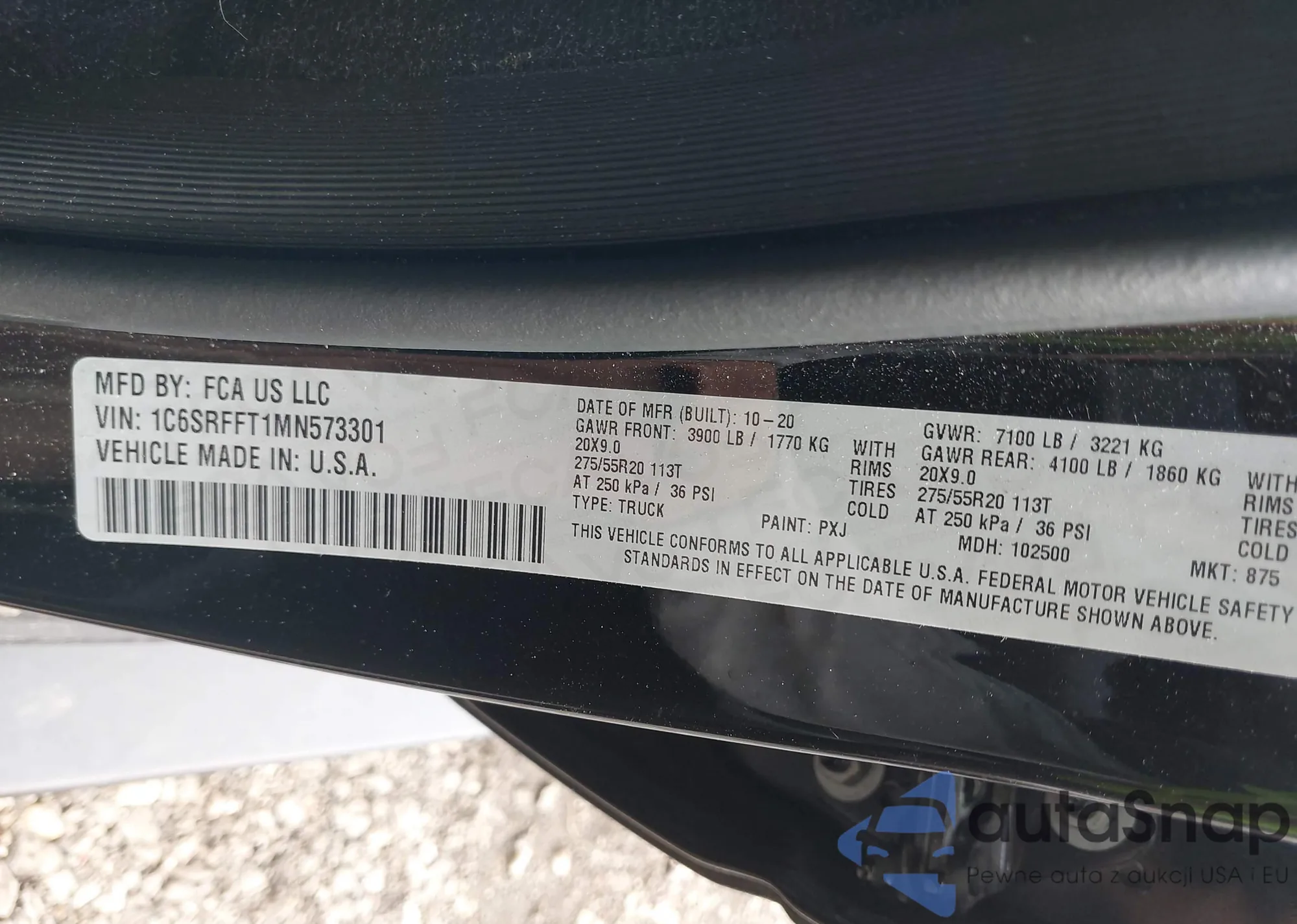 • VIN: 1C6SRFFT1MN573301