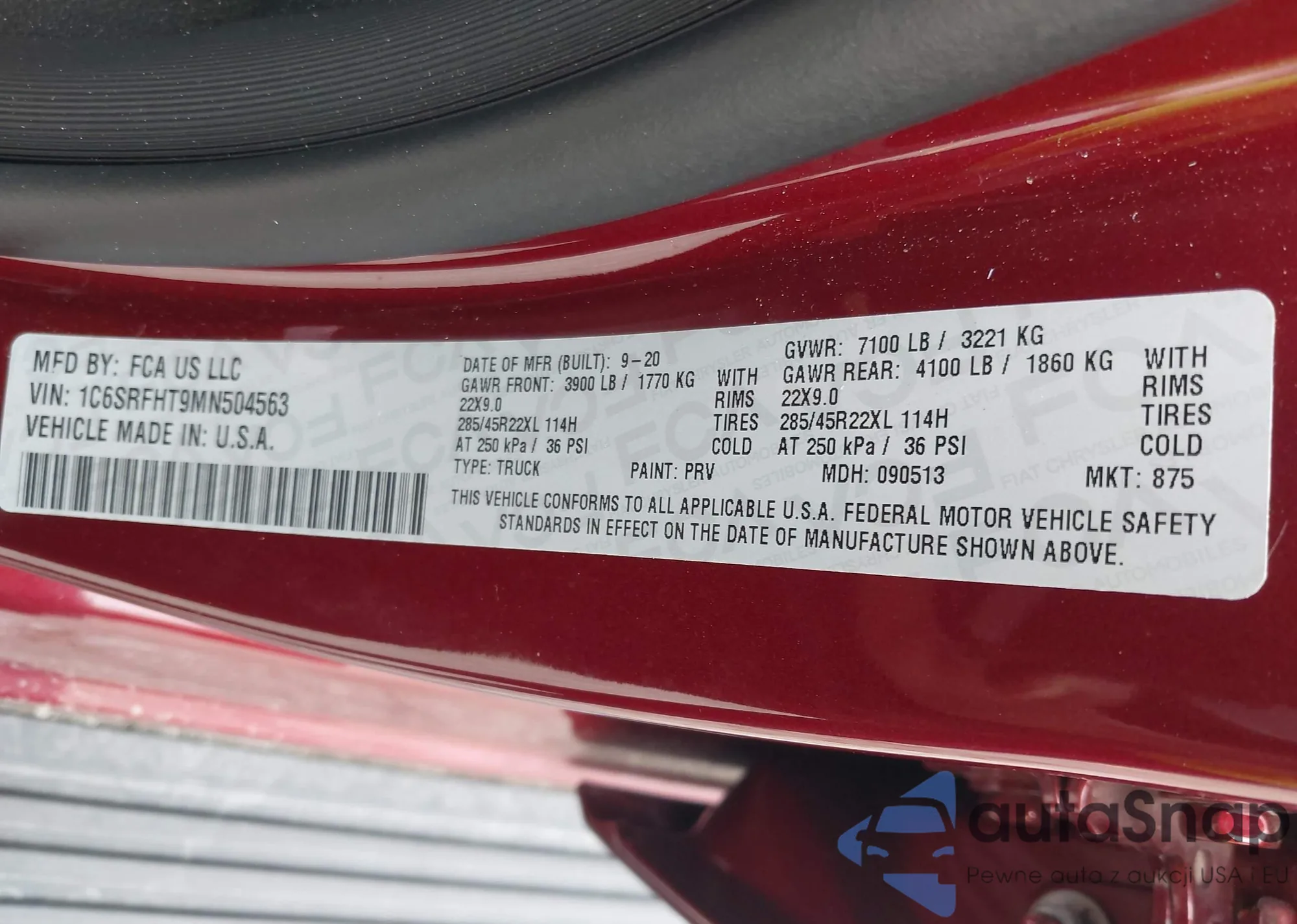 VIN: 1C6SRFHT9MN504563
