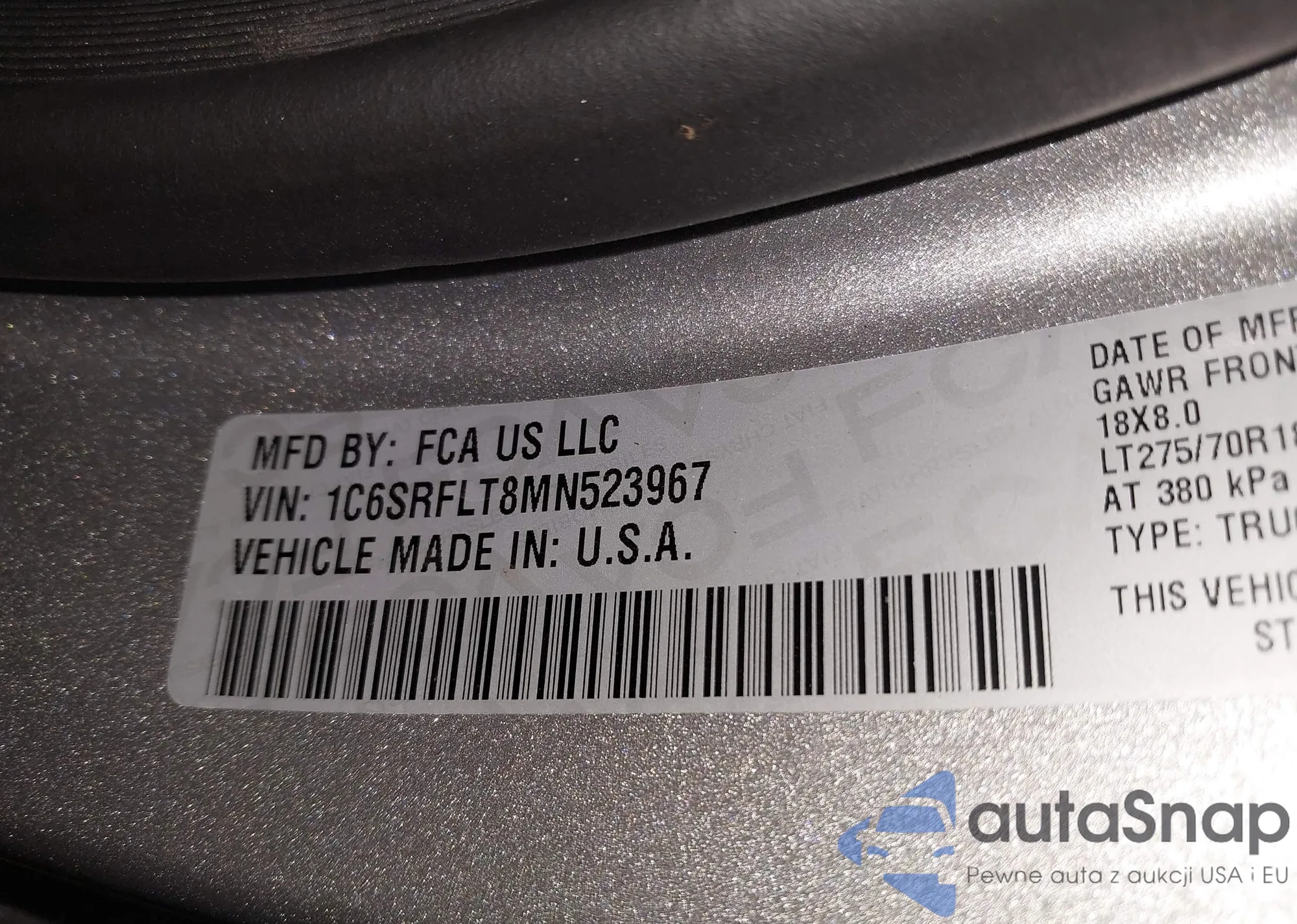 VIN: 1C6SRFLT8MN523967