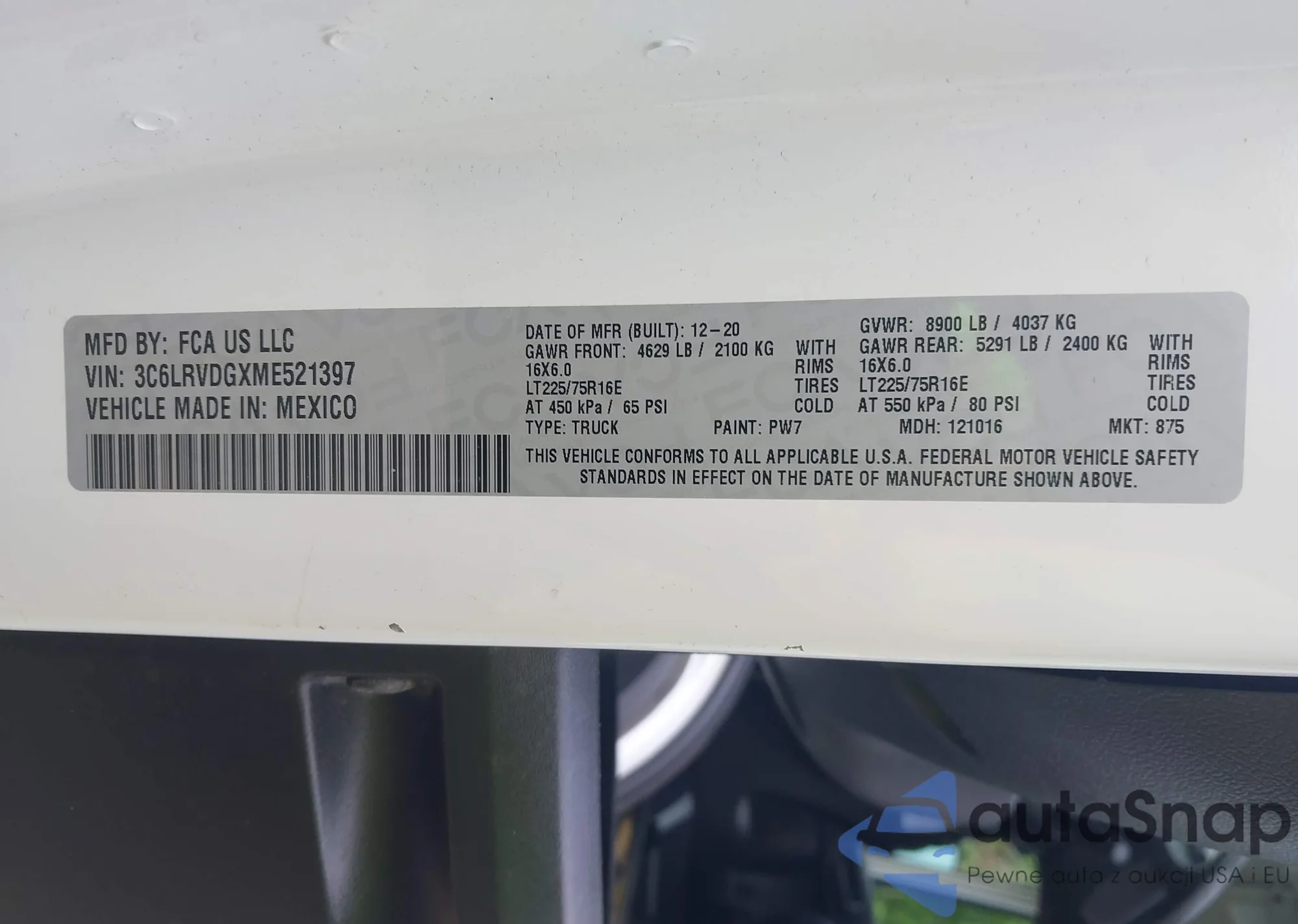 VIN: 3C6LRVDGXME521397