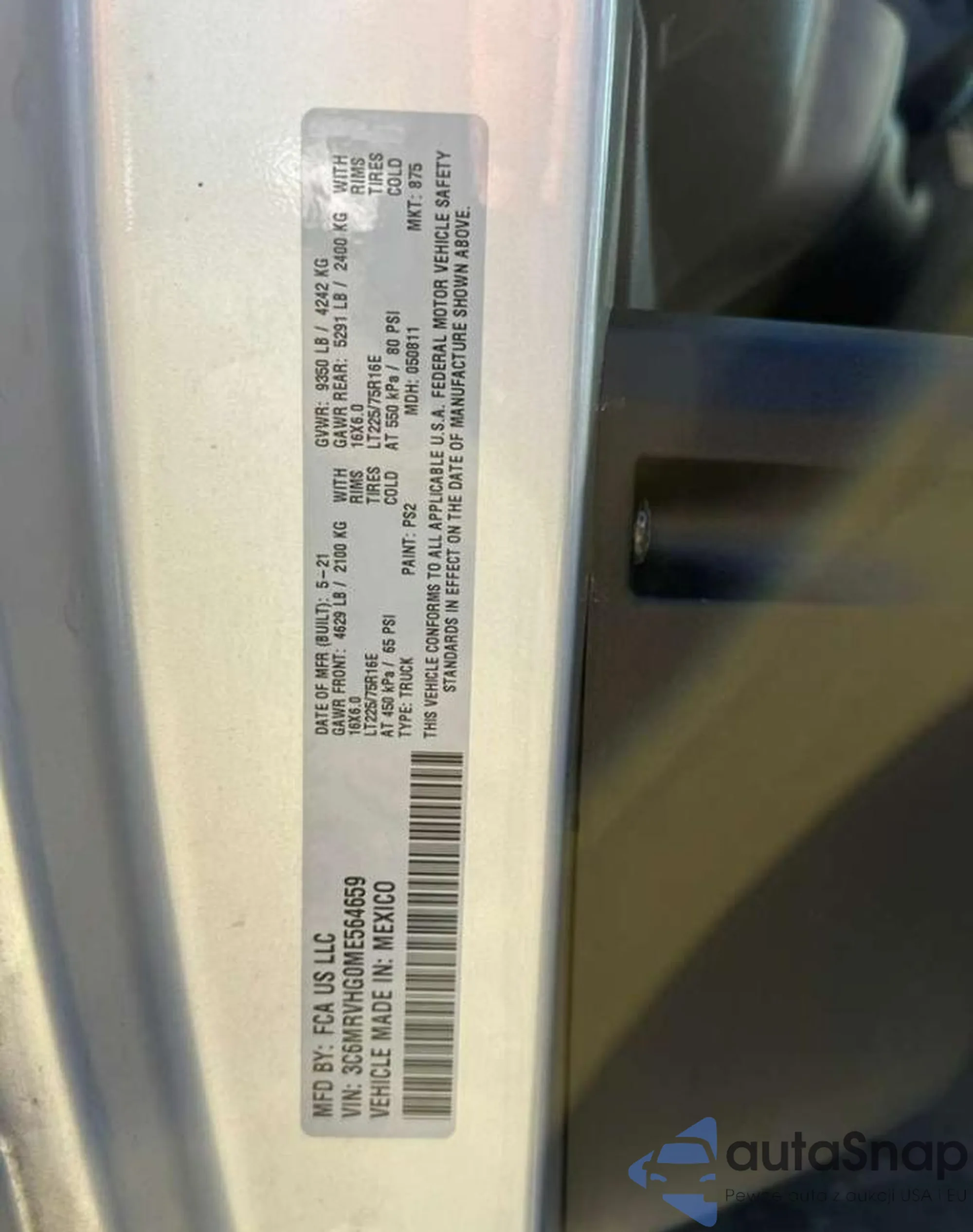 VIN: 3C6MRVHG0ME564659