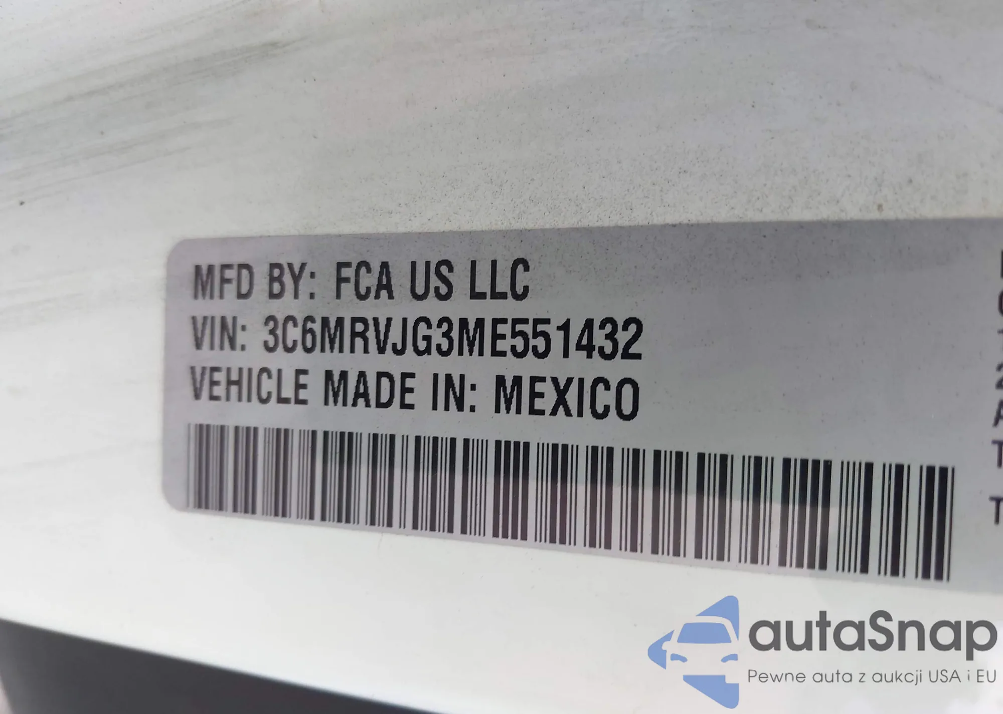 • VIN: 3C6MRVJG3ME551432