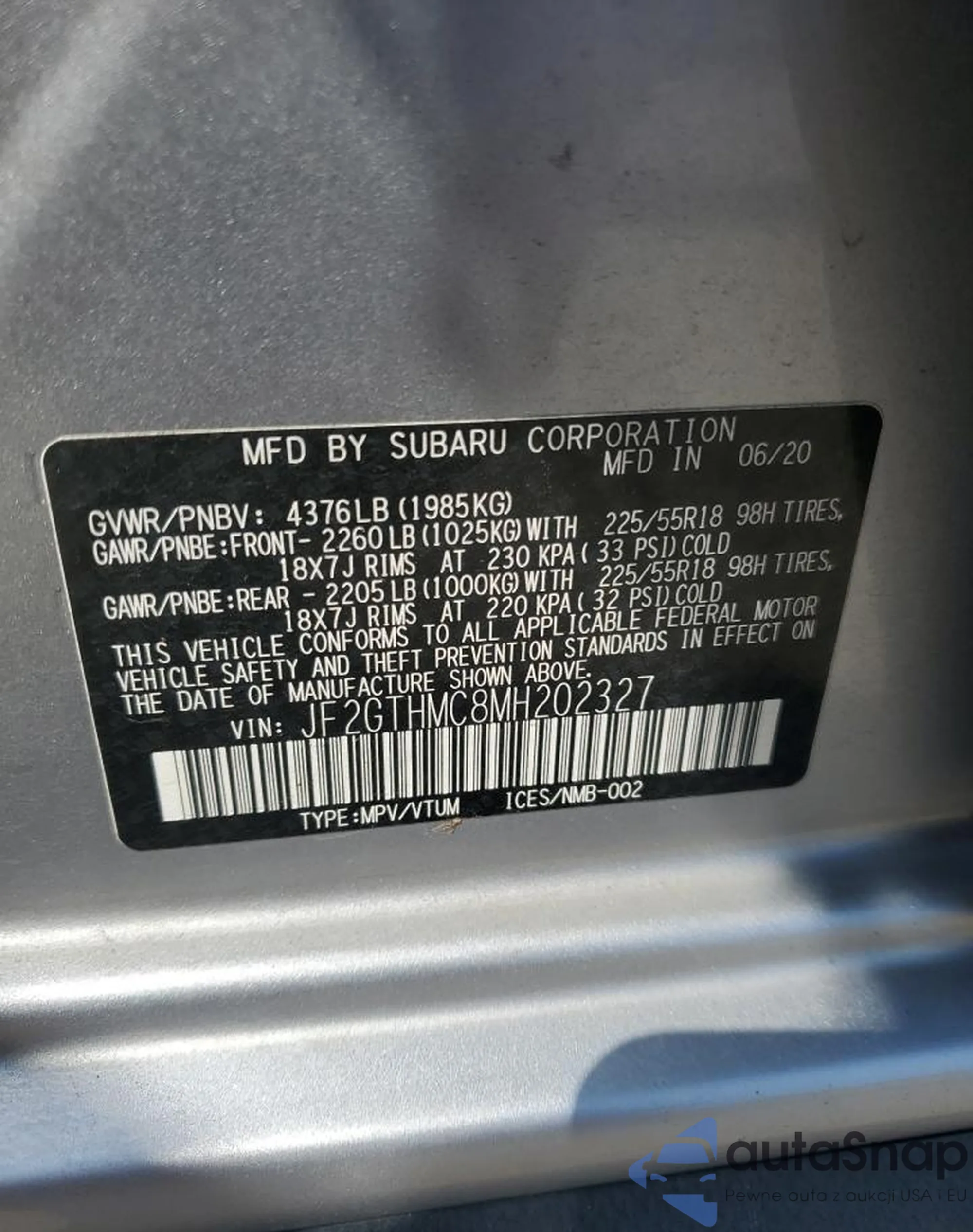 VIN: JF2GTHMC8MH202327