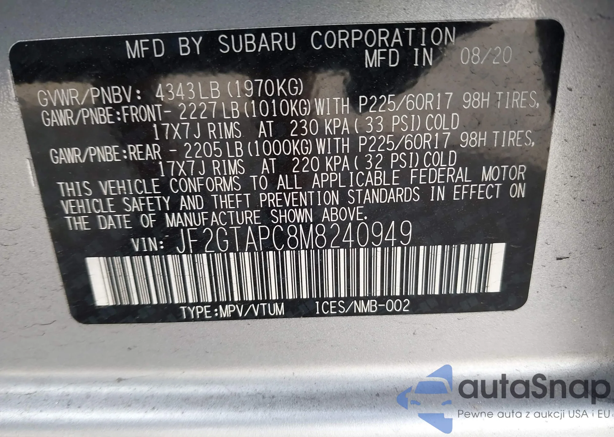 • VIN: JF2GTAPC8M8240949