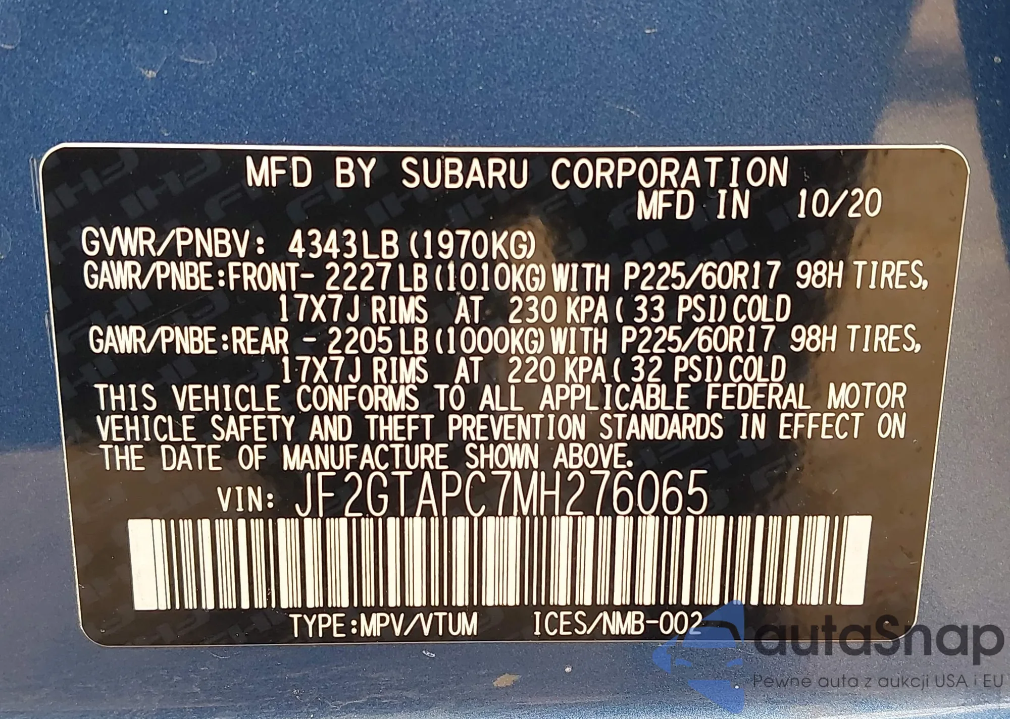 VIN: JF2GTAPC7MH276065