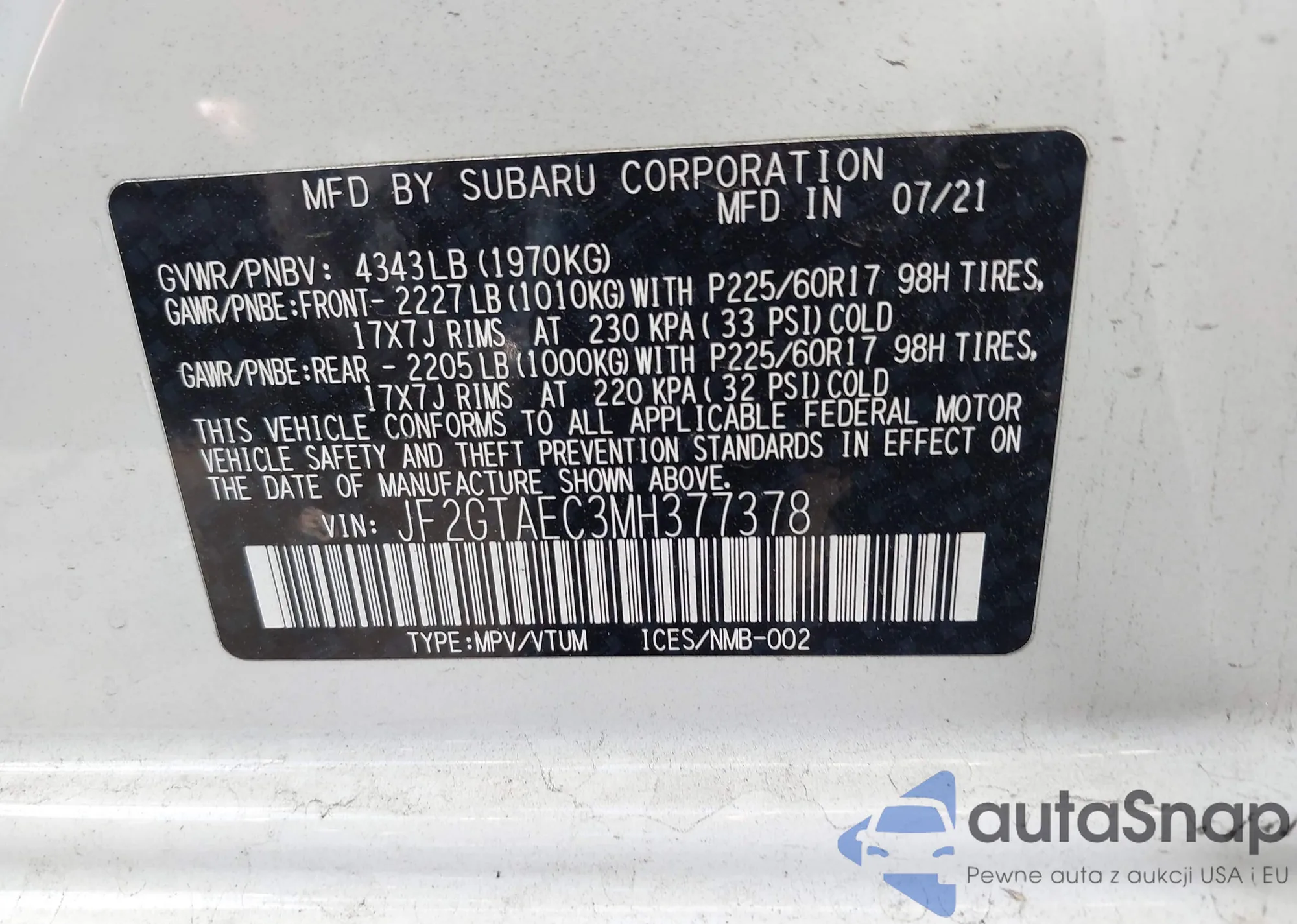 VIN: JF2GTAEC3MH377378
