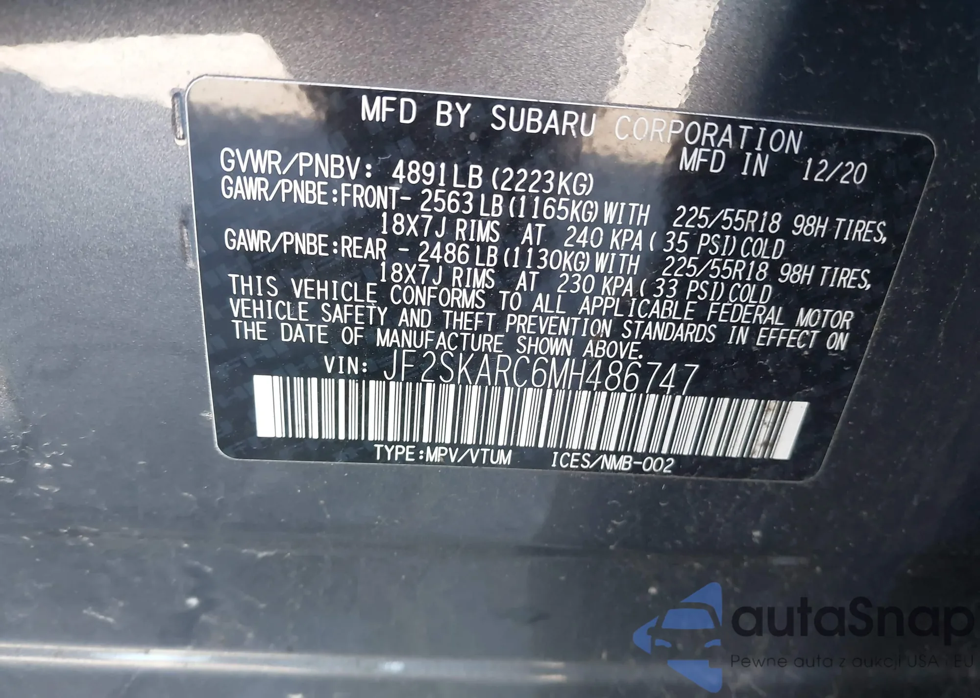 VIN: JF2SKARC6MH486747