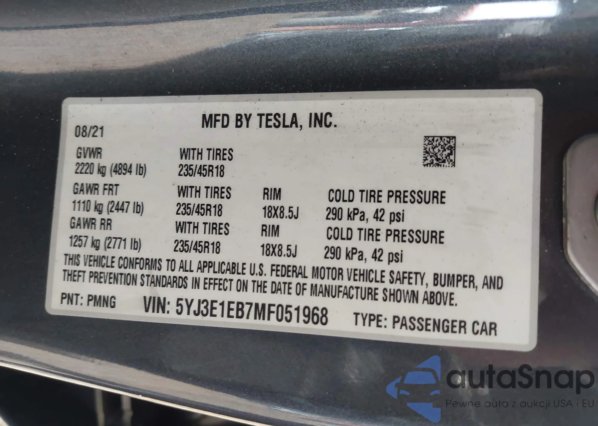 VIN: 5YJ3E1EB7MF051968