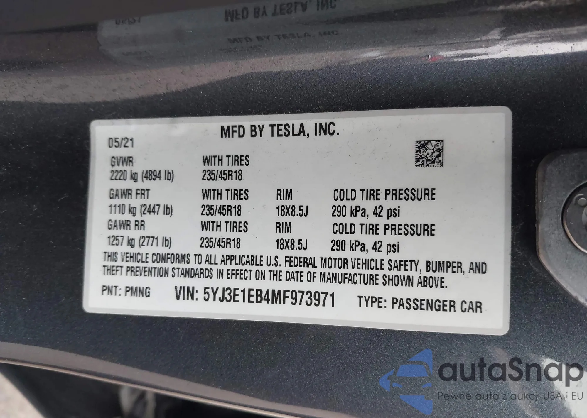 VIN: 5YJ3E1EB4MF973971