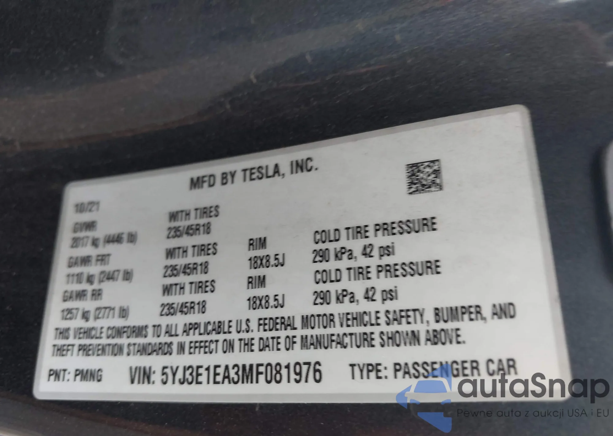 VIN: 5YJ3E1EA3MF081976