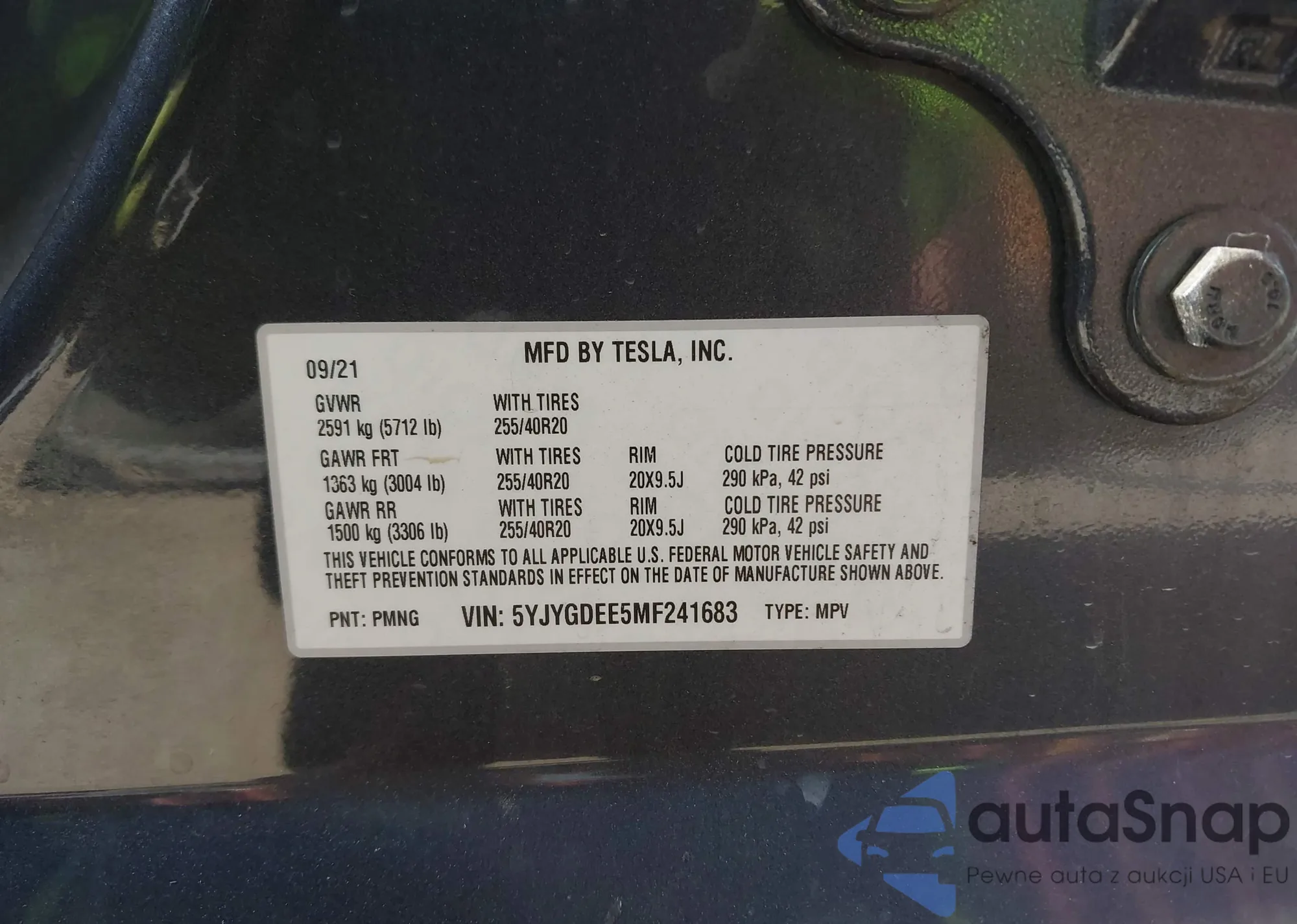 The car Tesla Model Y 2021 (VIN 5YJYGDEE5MF241683) has not been auctioned before. The documents are clean, and the mileage matches or is below the market average. Sold by an insurance company – we recommend purchase. Delivery to the port will take approx. 6–8 weeks.