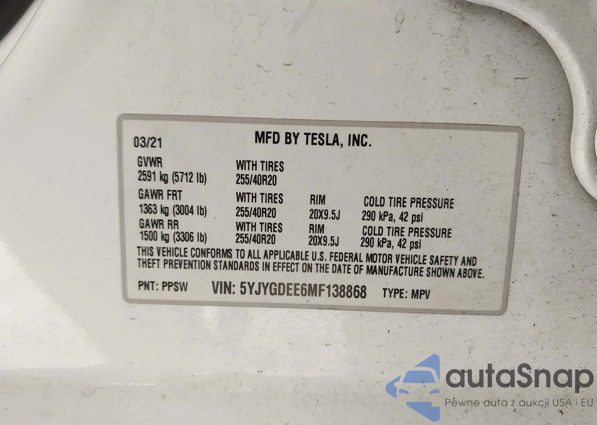 VIN: 5YJYGDEE6MF138868