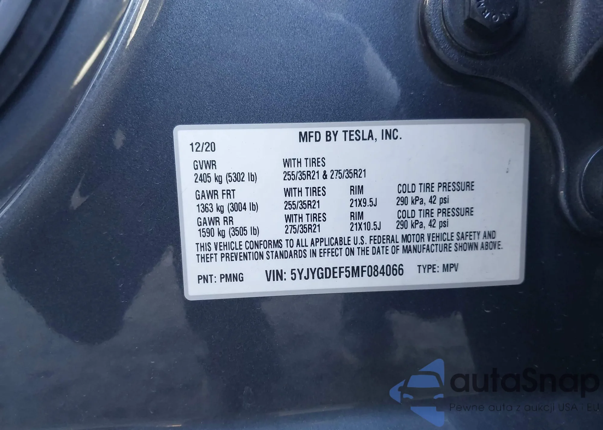 The car Tesla Model Y 2021 (VIN 5YJYGDEF5MF084066) is sold by an unverified seller. We recommend checking the Carfax report and confirming registration possibilities before purchase.