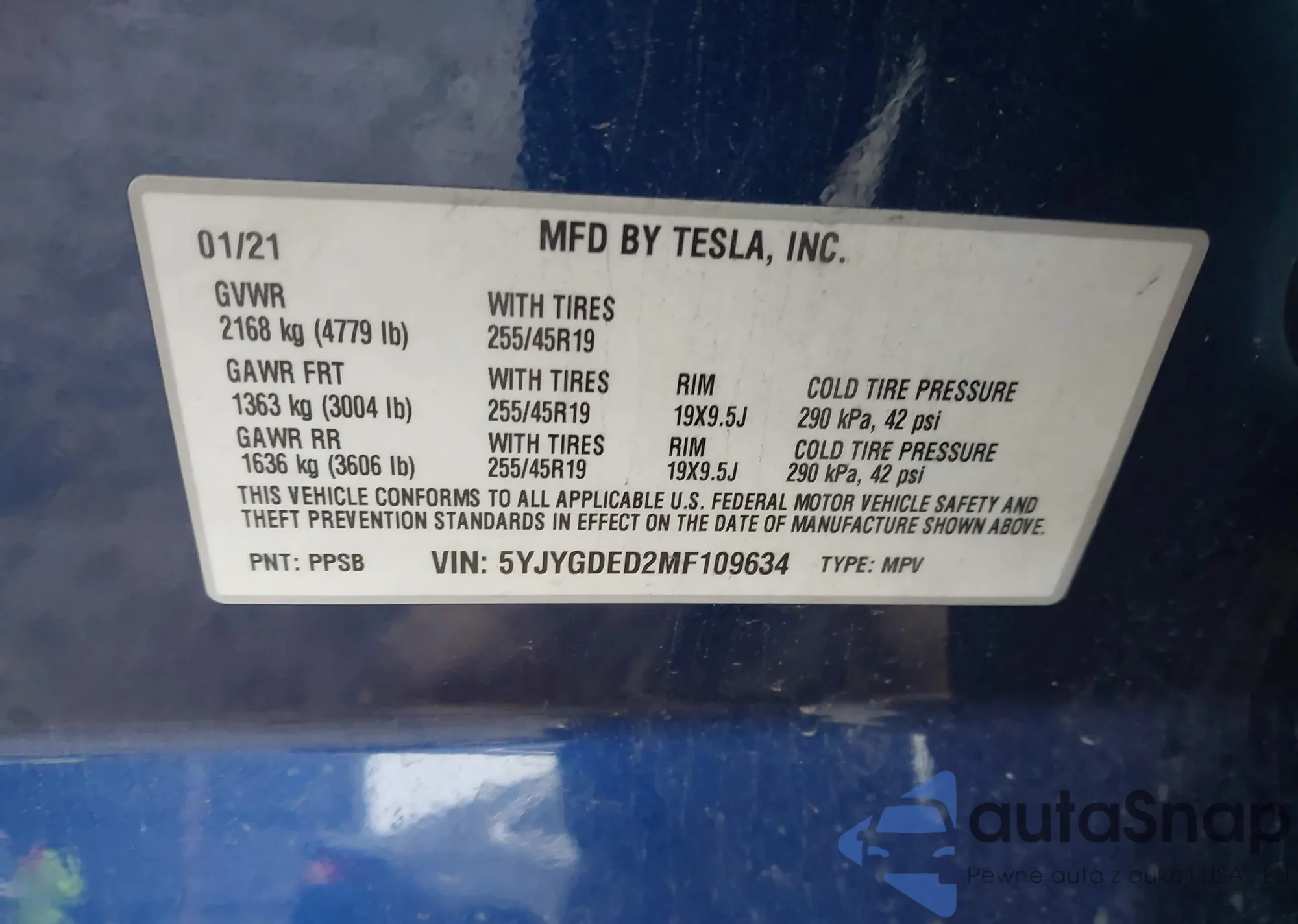 • VIN: 5YJYGDED2MF109634