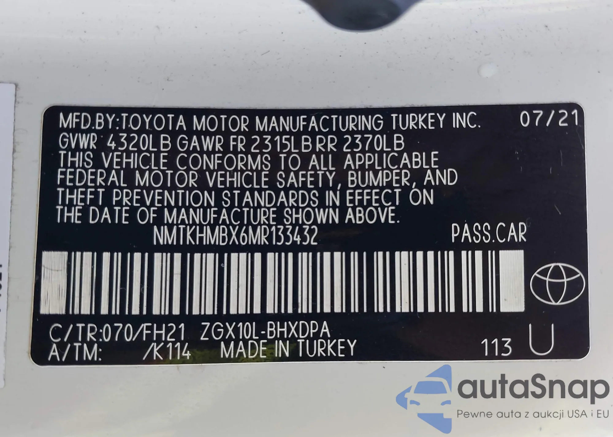 • VIN: NMTKHMBX6MR133432