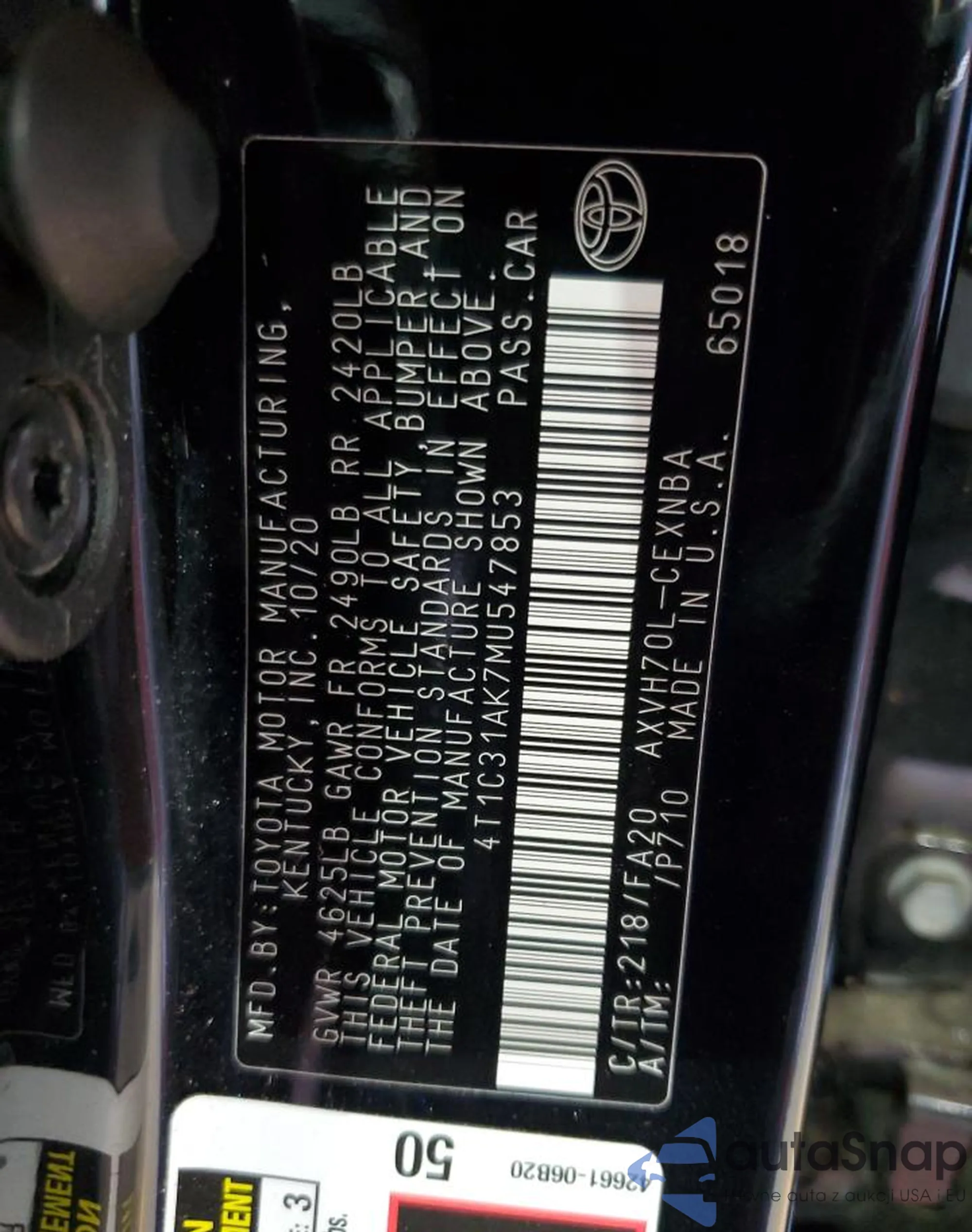 VIN: 4T1C31AK7MU547853