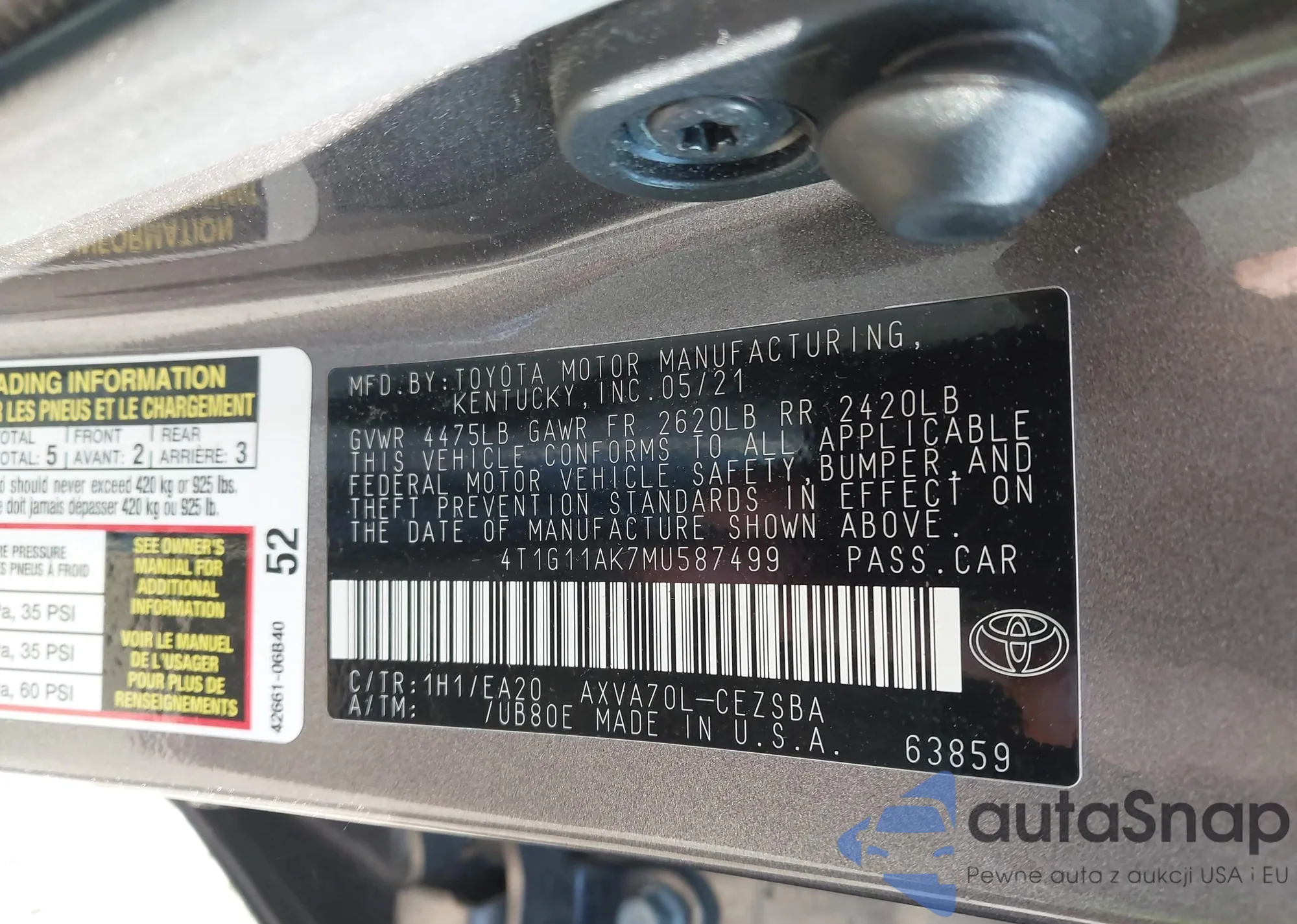 VIN: 4T1G11AK7MU587499