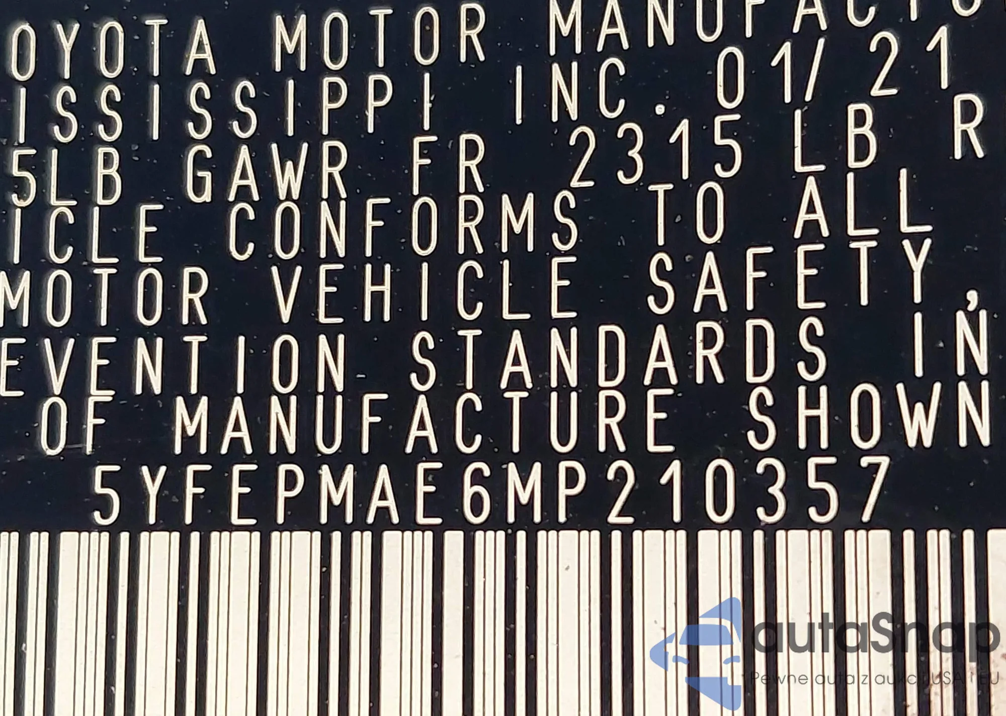 VIN: 5YFEPMAE6MP210357