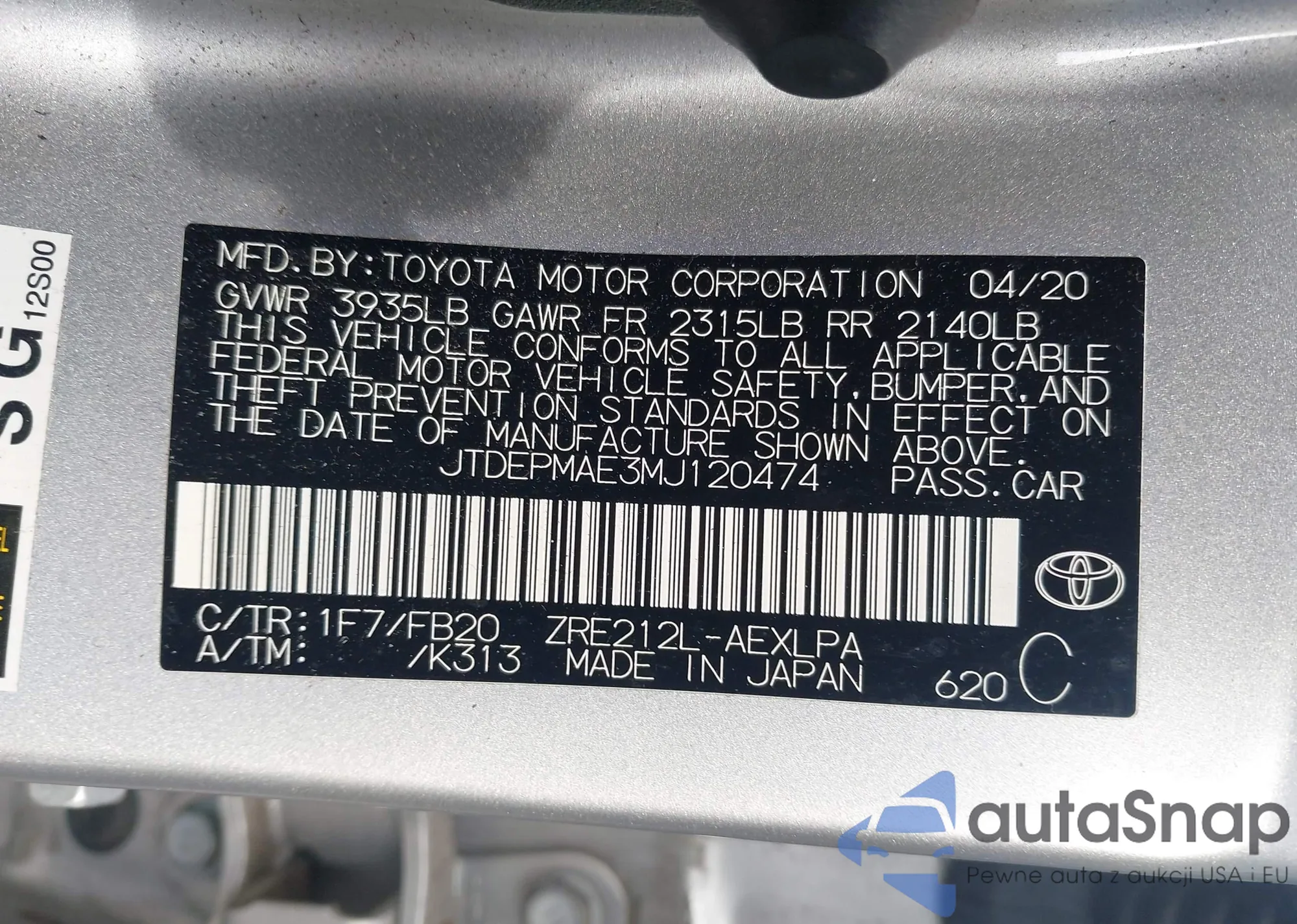 The car Toyota Corolla 2021 (VIN JTDEPMAE3MJ120474) has not been auctioned before. The documents are clean, and the mileage matches or is below the market average. Sold by an insurance company – we recommend purchase. Delivery to the port will take approx. 6–8 weeks.