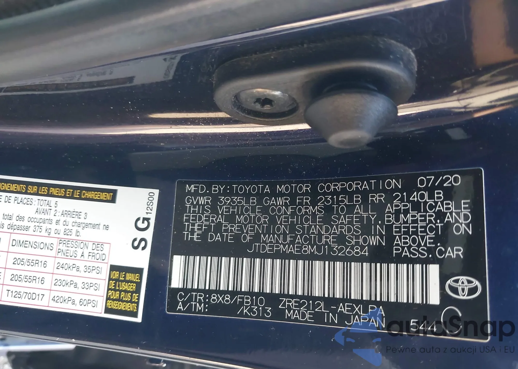 The car Toyota Corolla 2021 (VIN JTDEPMAE8MJ132684) has not been auctioned before. The documents are clean, and the mileage matches or is below the market average. Sold by an insurance company – we recommend purchase. Delivery to the port will take approx. 6–8 weeks.