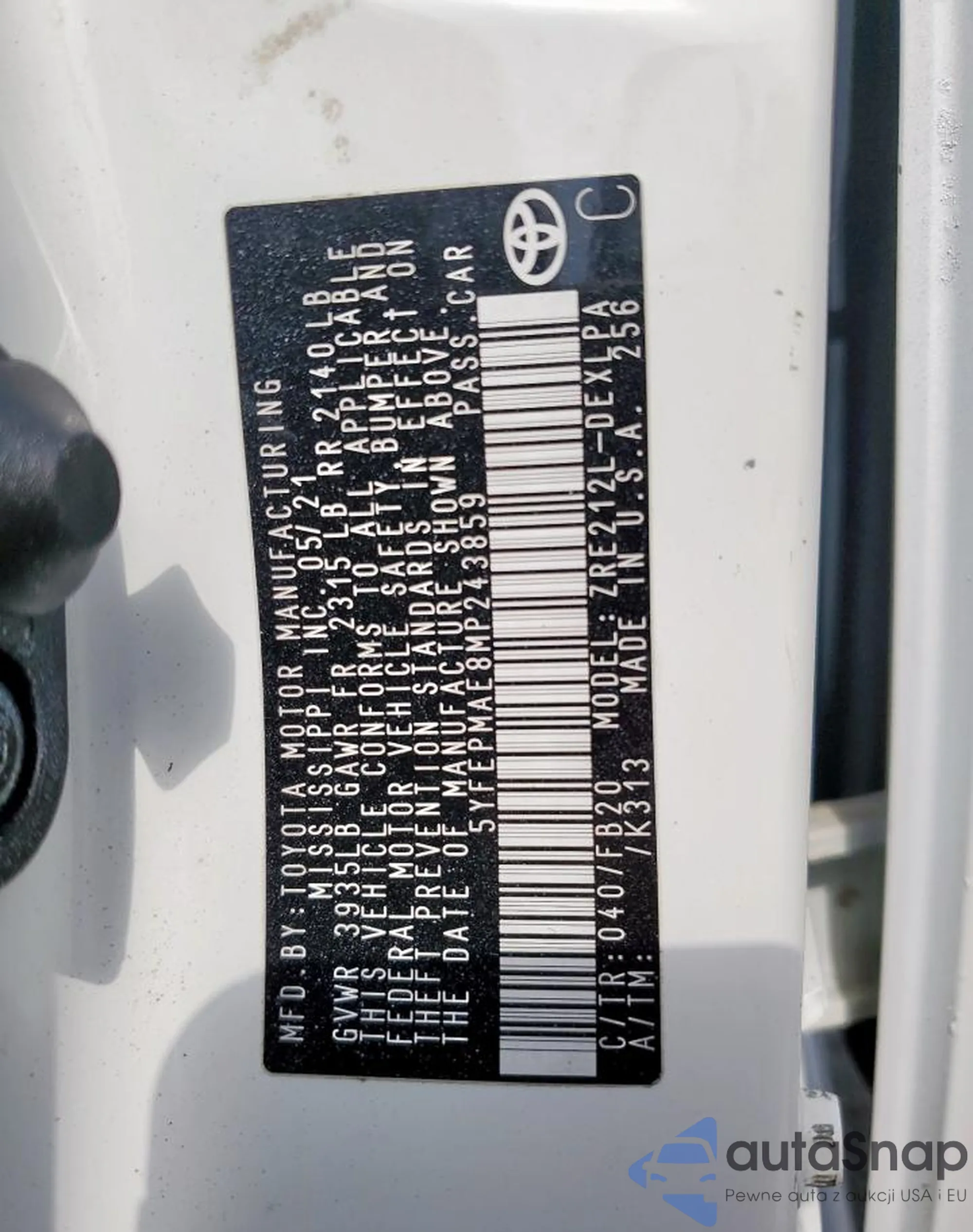 VIN: 5YFEPMAE8MP243859