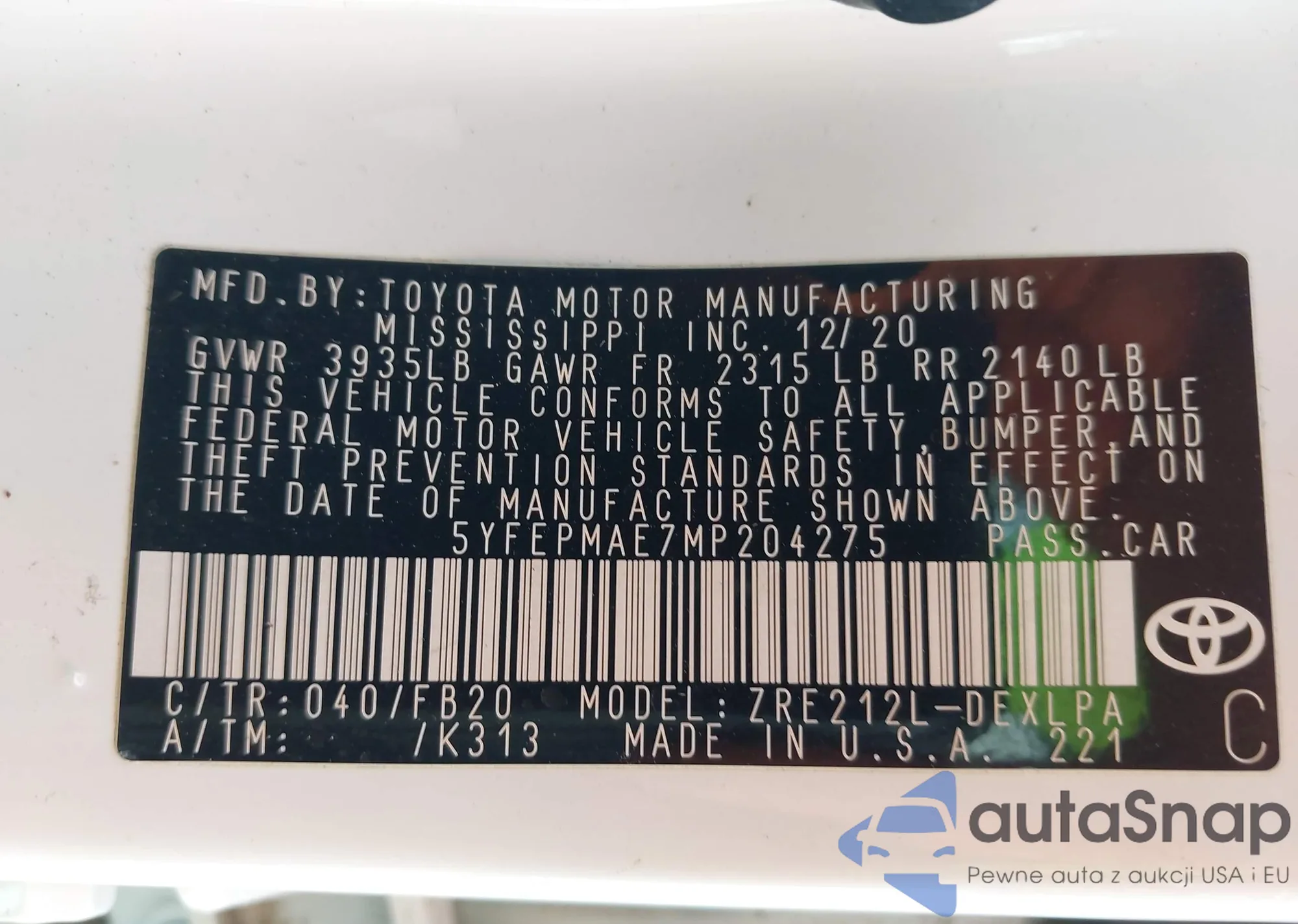 VIN: 5YFEPMAE7MP204275