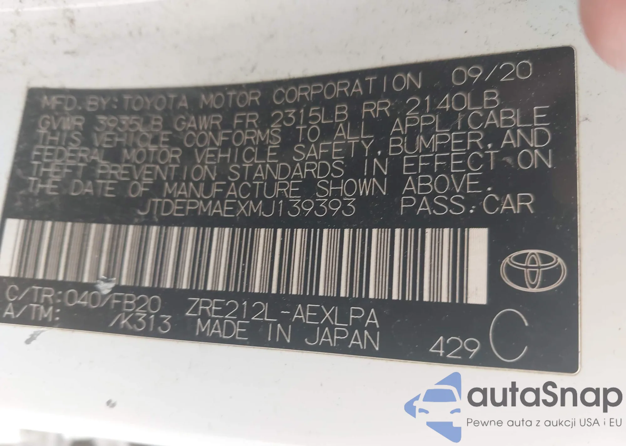 VIN: JTDEPMAEXMJ139393